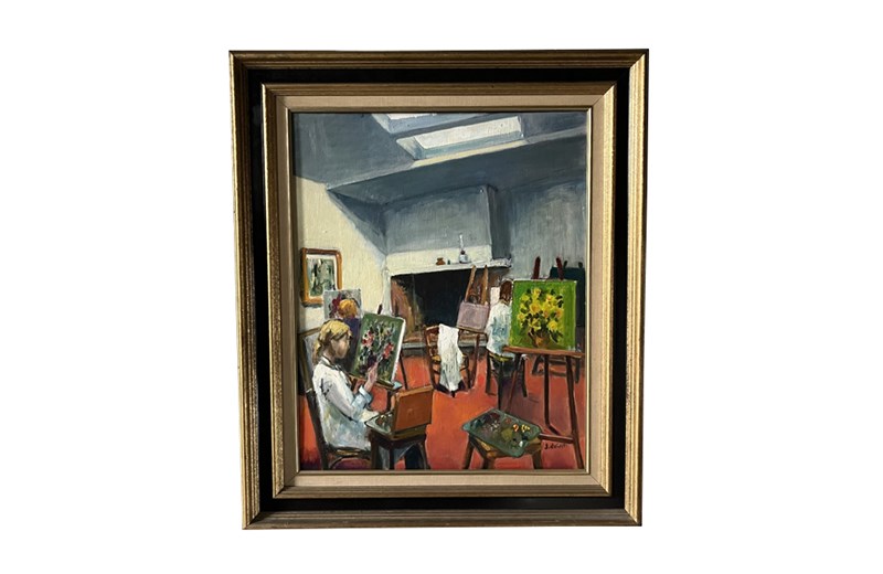 Mid Century French Oil Painting 'Interior Of An Artists Studio'