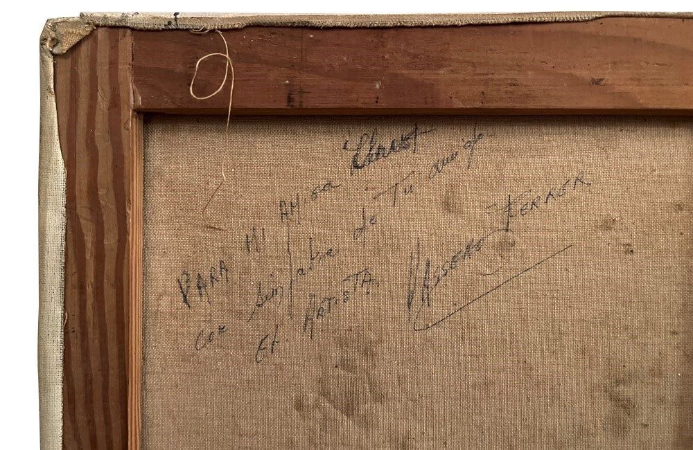 Signed to the lower right by the artist, Passero Ferrer. Dedicated and signed to the rear.