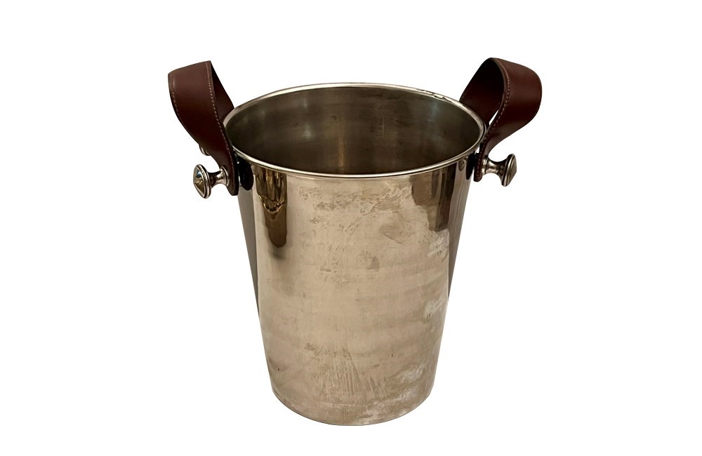 Mid Century Silverplate Champagne Bucket With Leather Handles