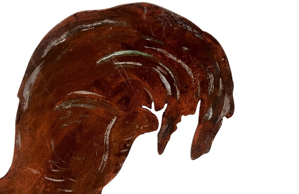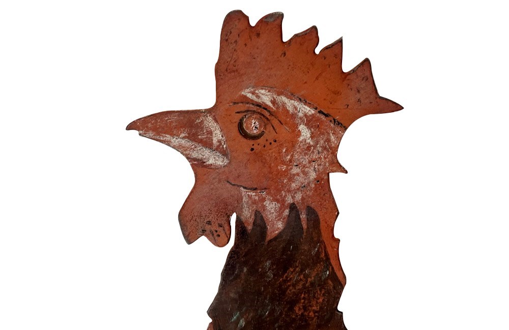 Painted iron rooster windvane, from an old French girouette makers atelier. Mid 20th century.