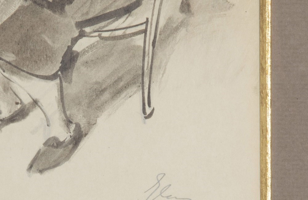These evocative images are framed in simple gilt wooden frames behind glass. Each are signed to the lower right by the artist. (Undeciphered).