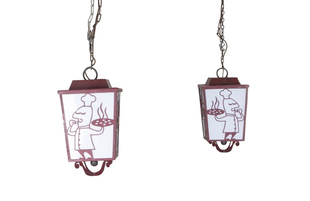 Pair Of 20Th Century Italian Iron Pizza Chef Lanterns