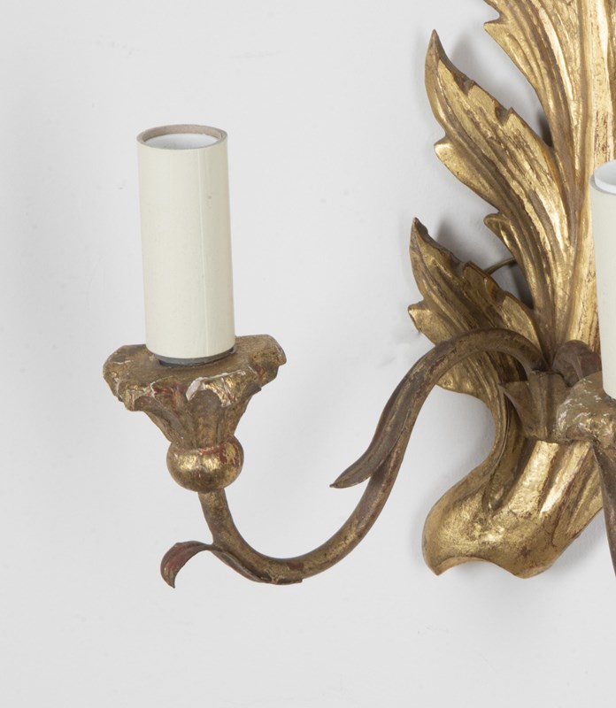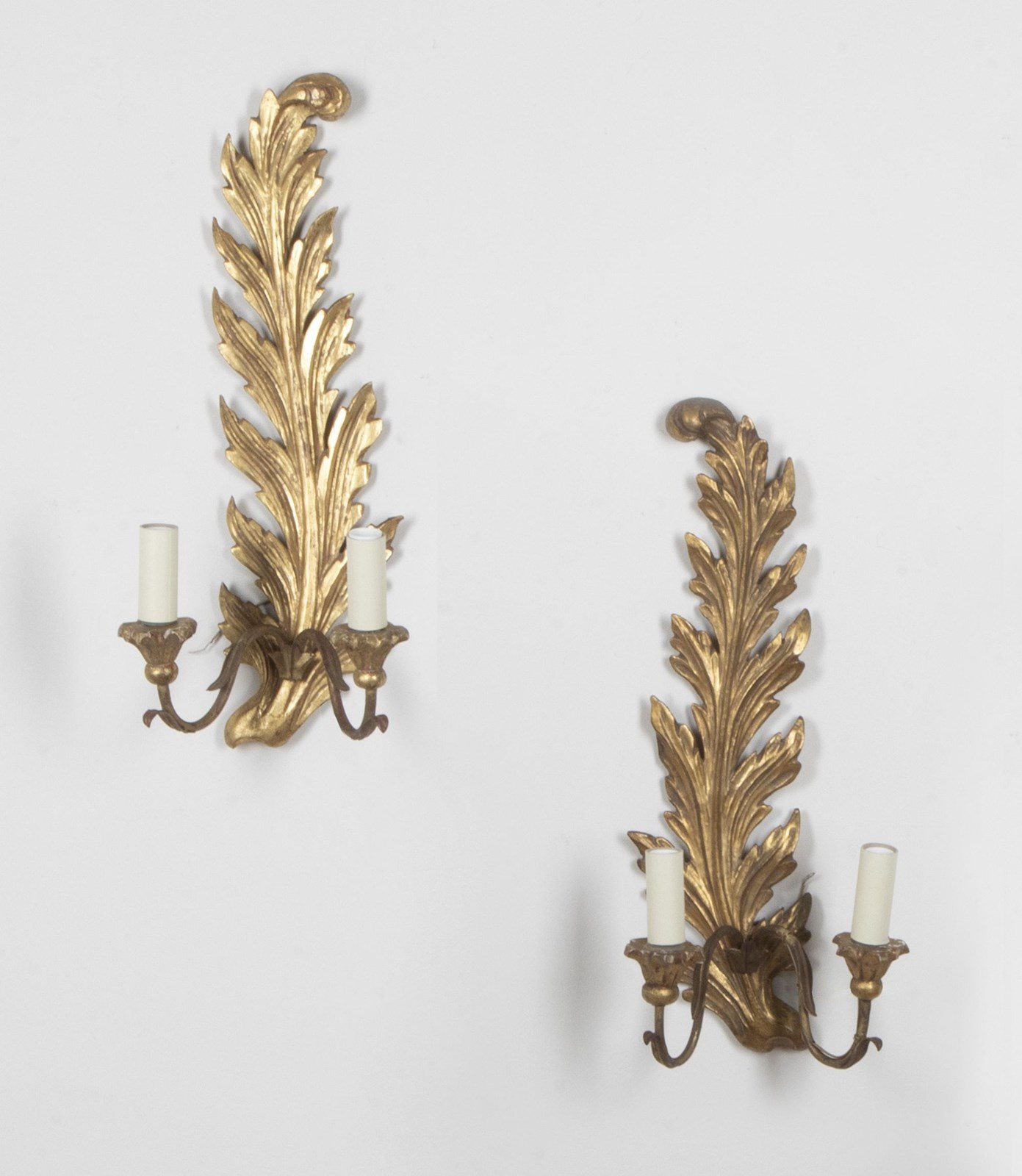 Pair Of Italian Giltwood Feather Plume Wall Lights