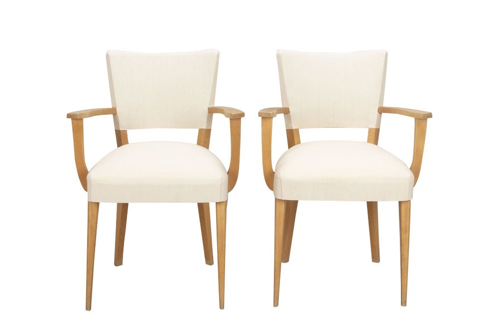 Pair of mid-20th Century French pale beech bridge chairs of stylish and unusual form. Circa 1950