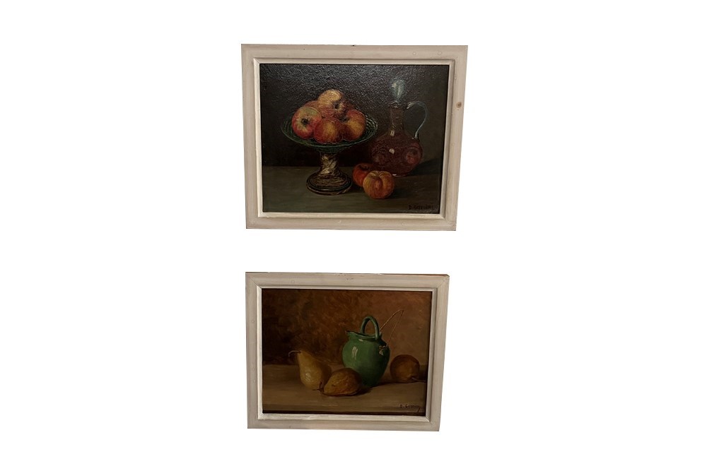 Pair Of Small French Still Life Paintings By D.Geronimi