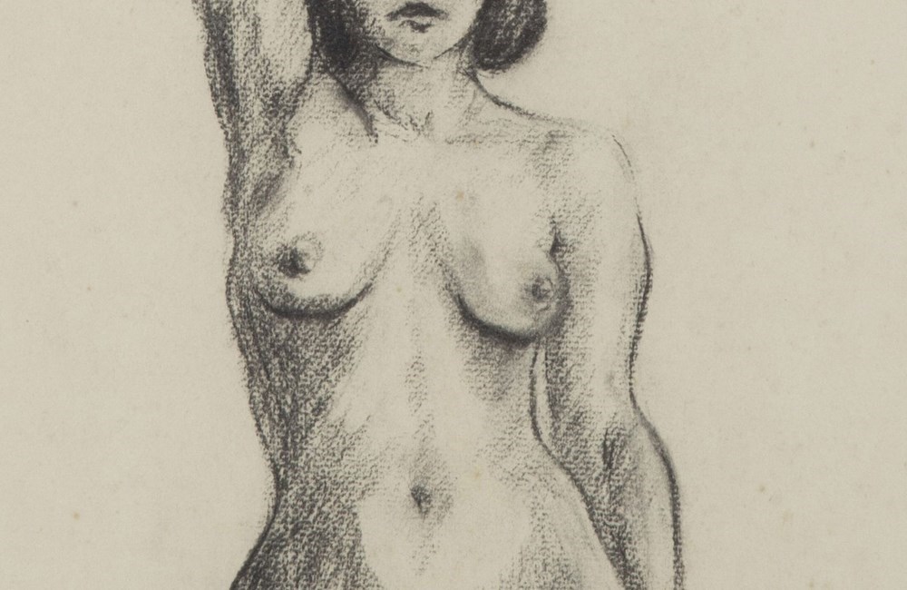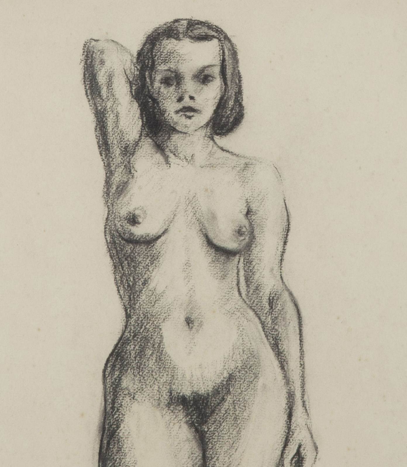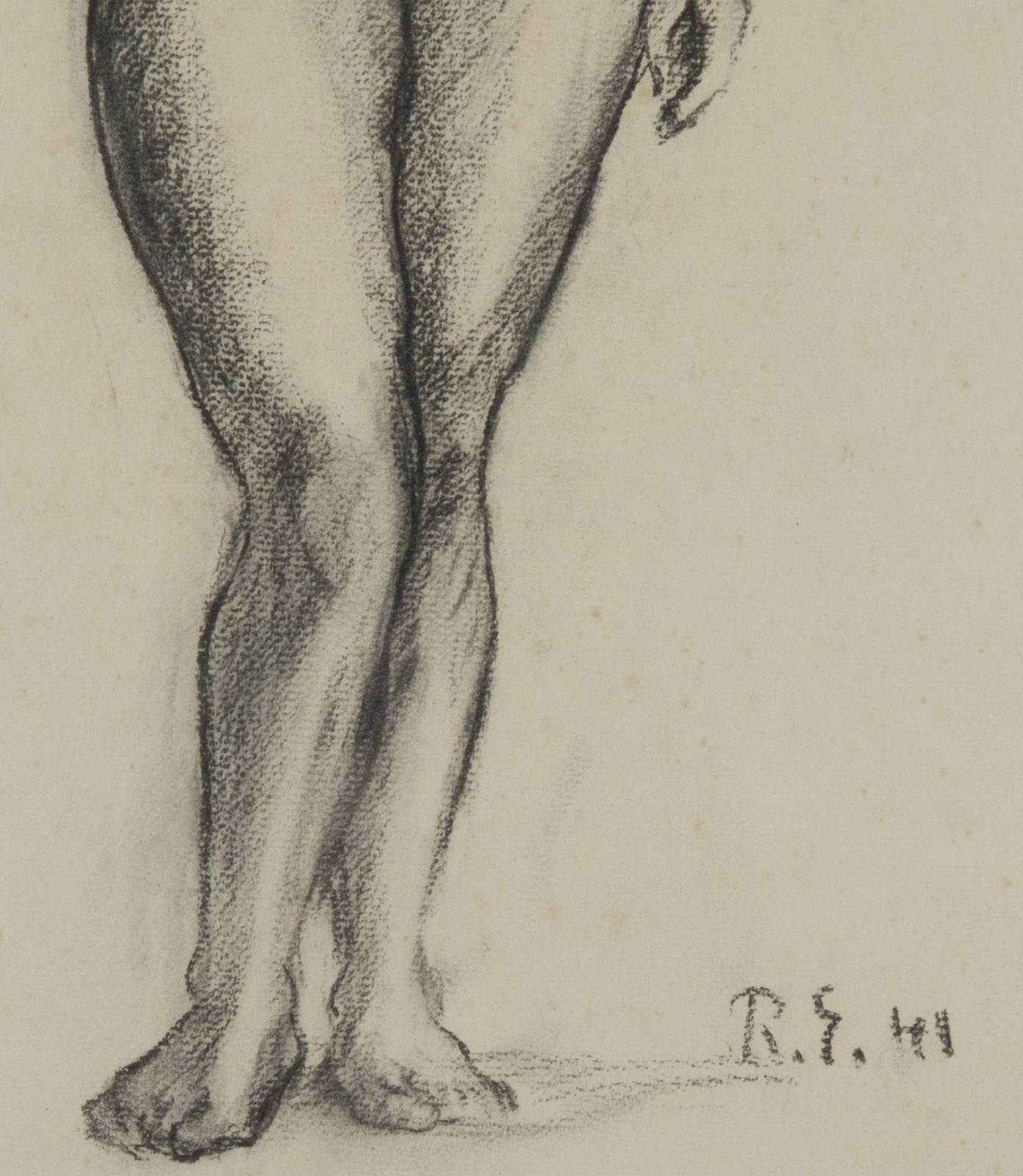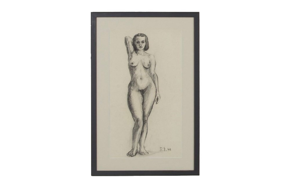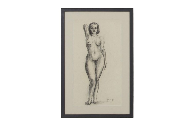 The models are shown in reclined, standing and seated poses. One is initialled, R.E, and dated 1941, by the artist. Behind glass in simple black wooden frames.
