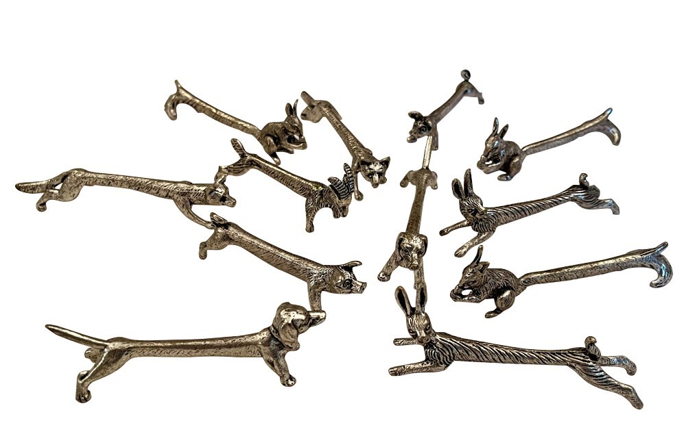 Charming set of twelve 20th Century French knife rests in the form of animals.