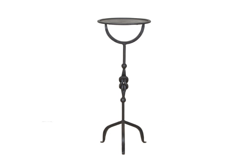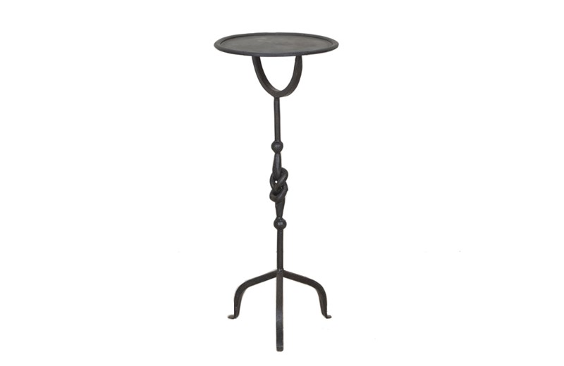 This stylish iron occasional table with its knotted central design to the stem displays great craftsmanship. Circa 1970.