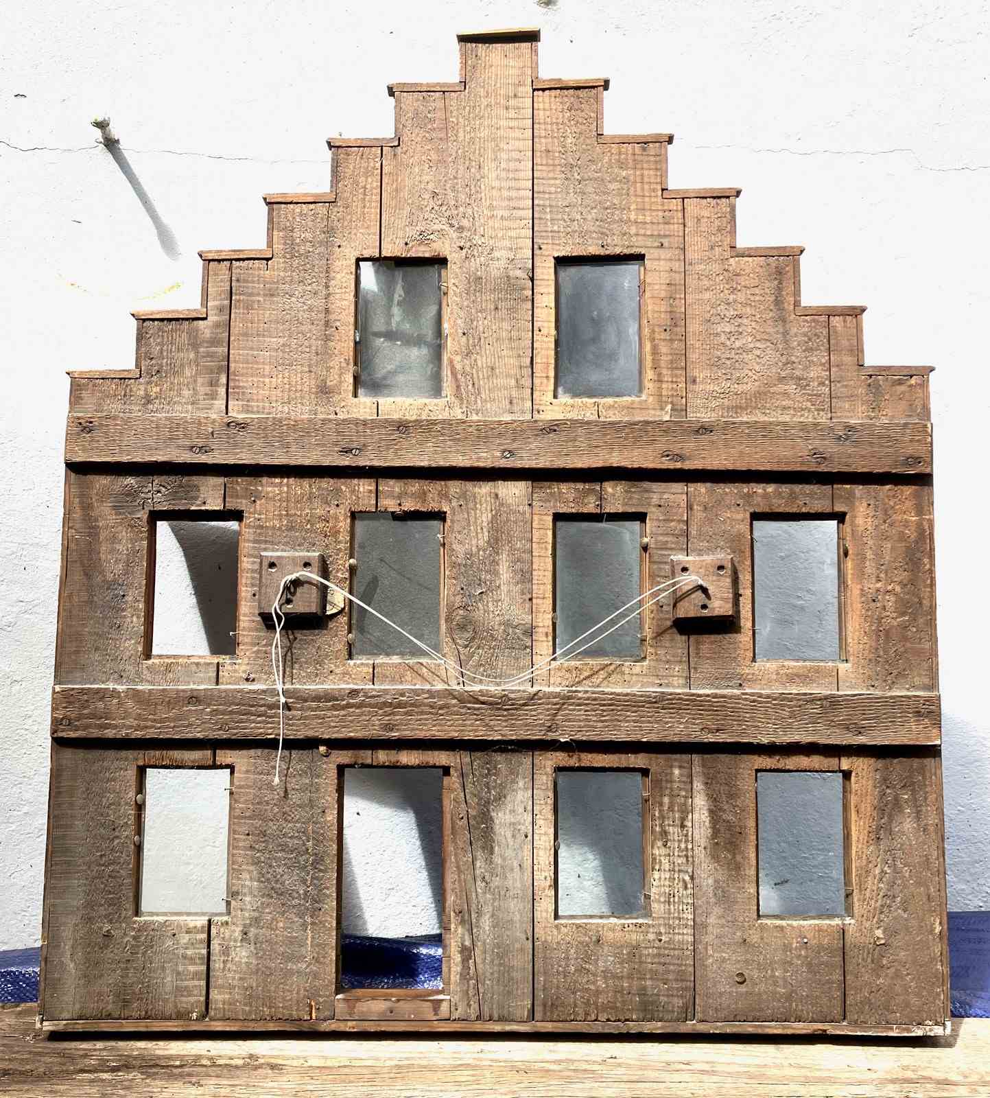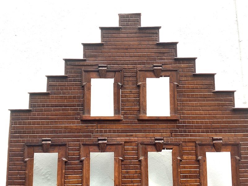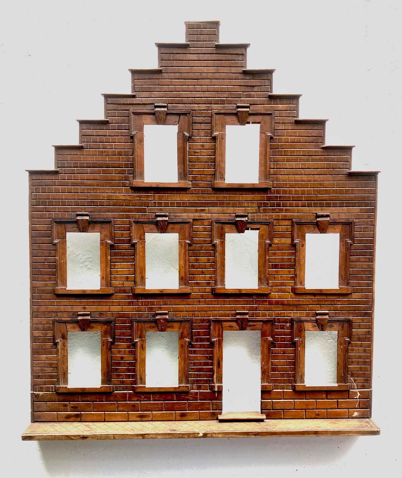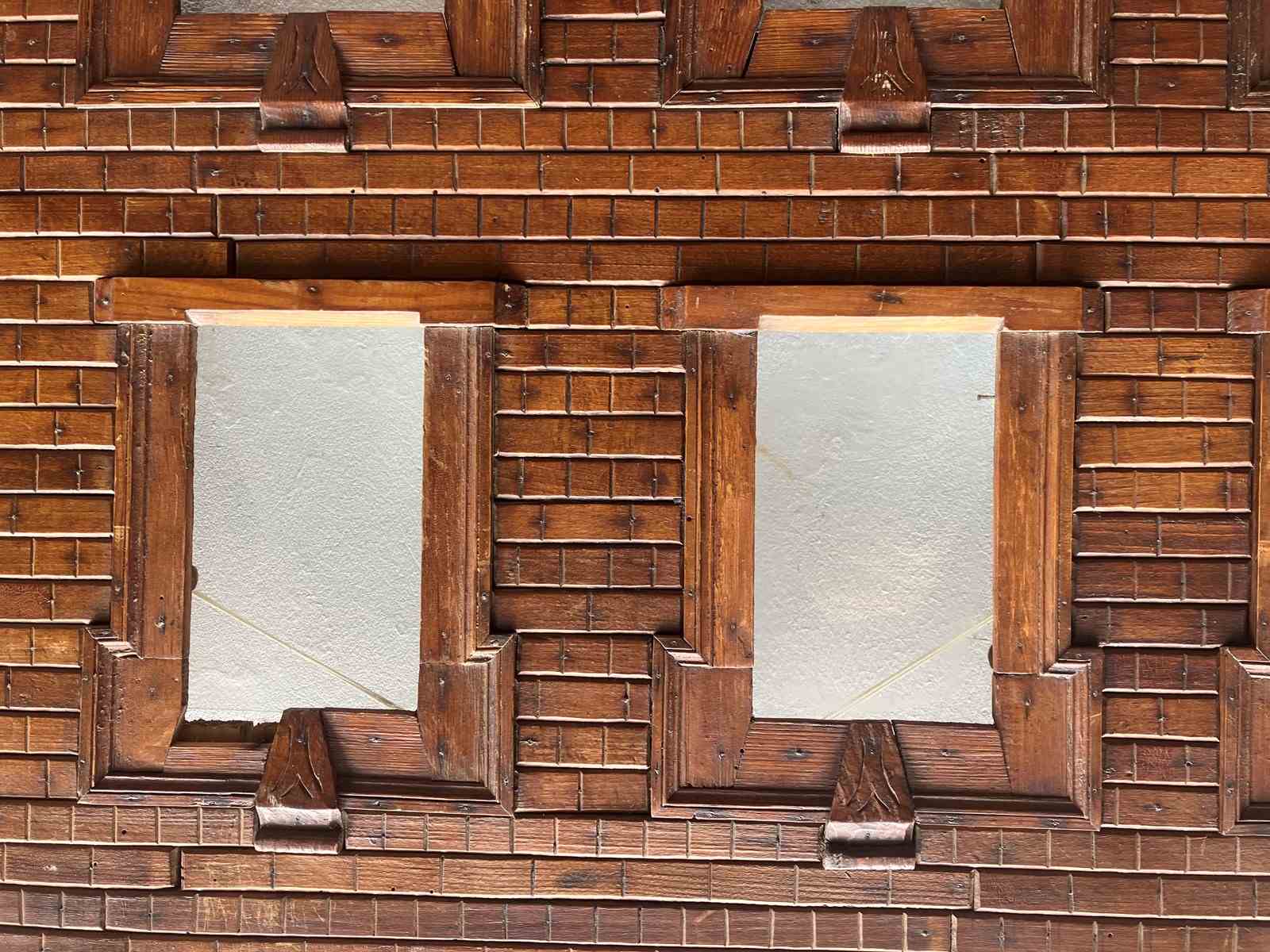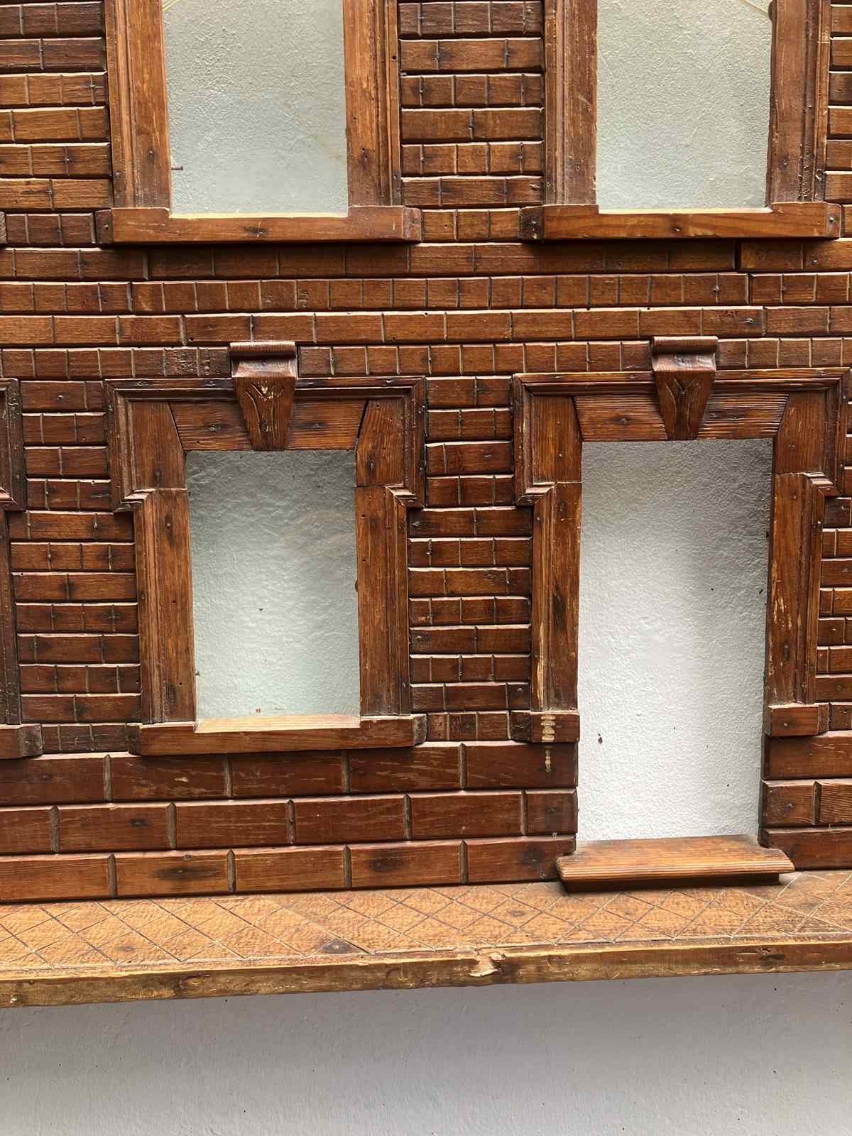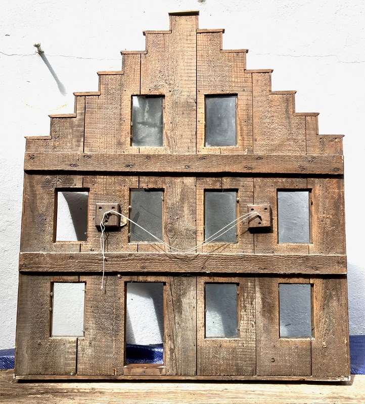 An interesting and decorative piece of Folk Art is thIs creation by an unknown artisan in France- A Model Front Facade of a House created as a Photo Display Holder