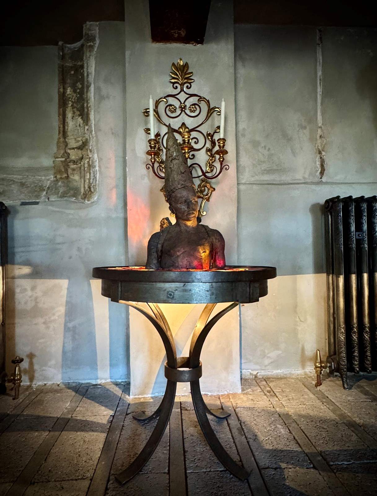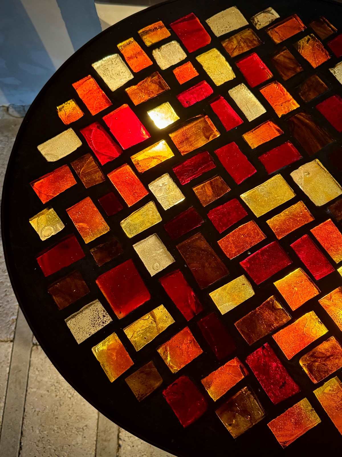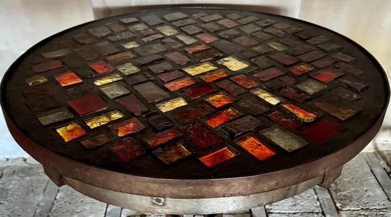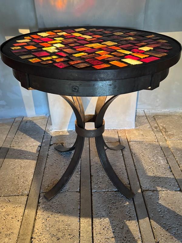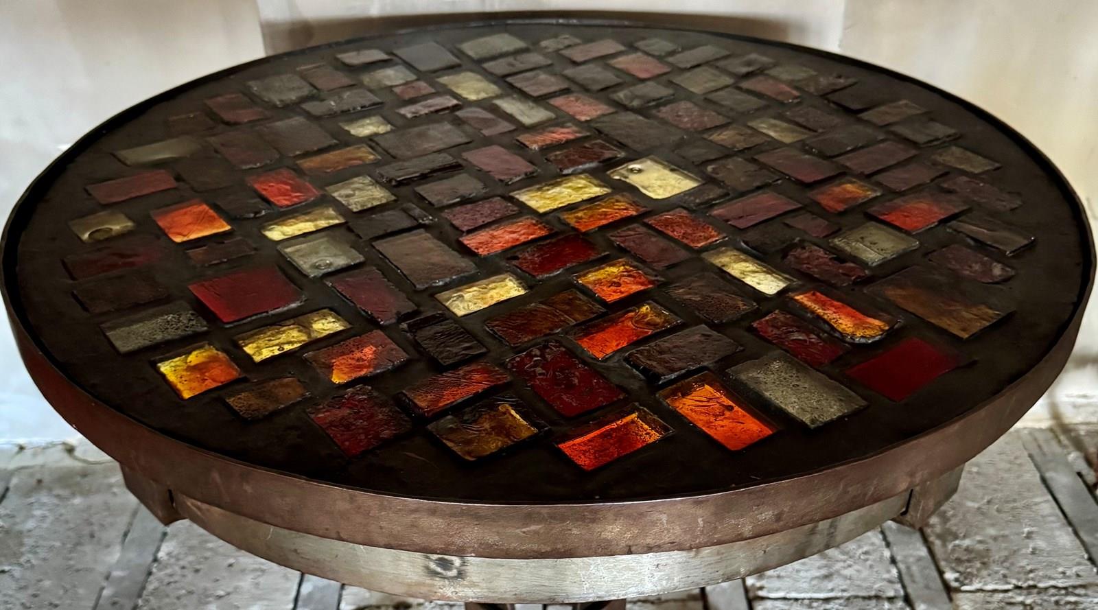 Unique steel and coloured glass table which lights up creating a stunning impact and atmosphere. The steel structure is excellent robust quality and the colourful glass looks great both unlit and lit, designed by Jean Simon Labret, circa 1960, France (same school as Avoinet).