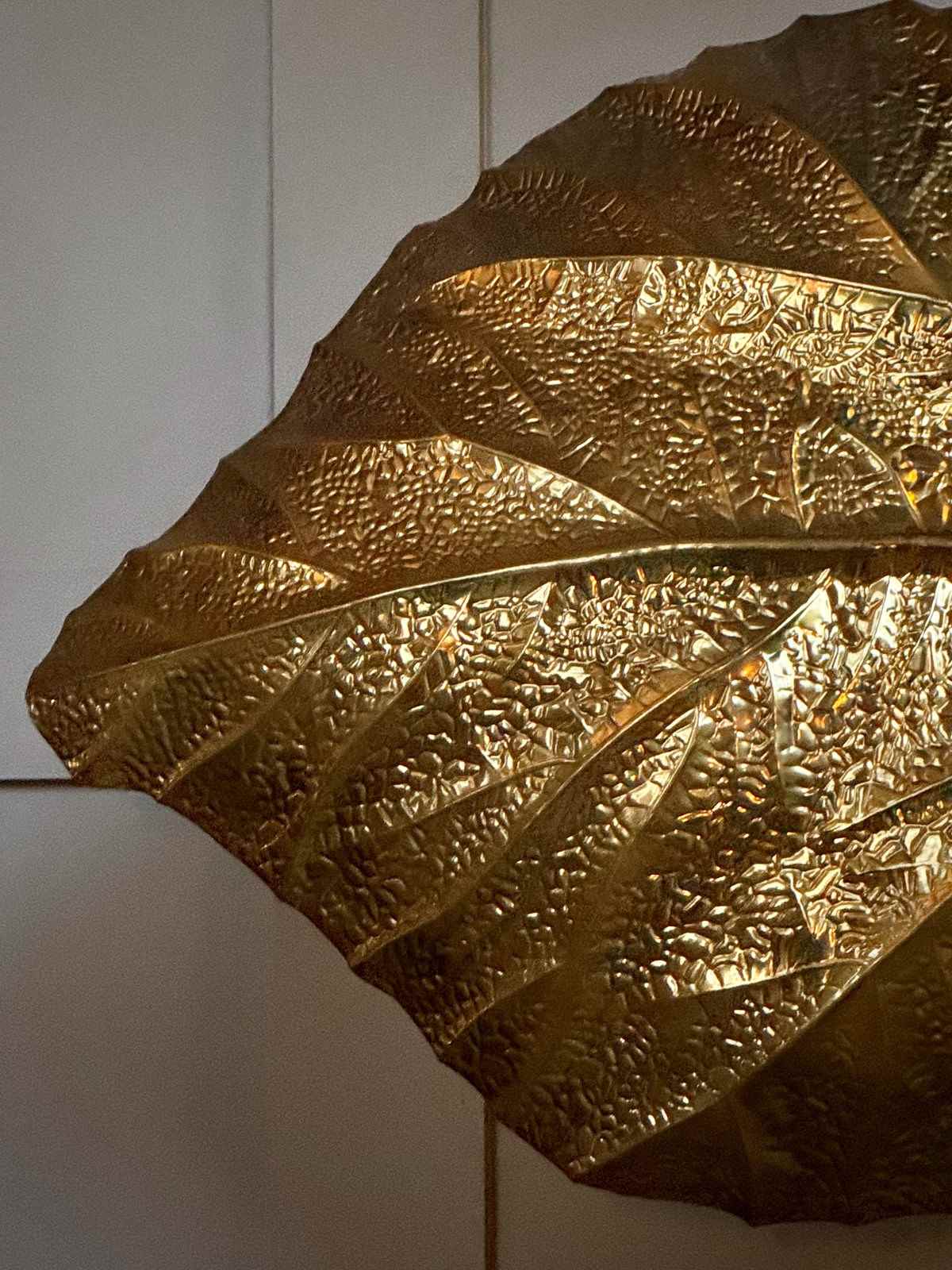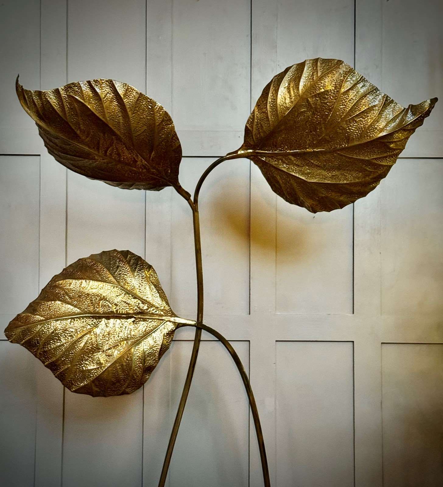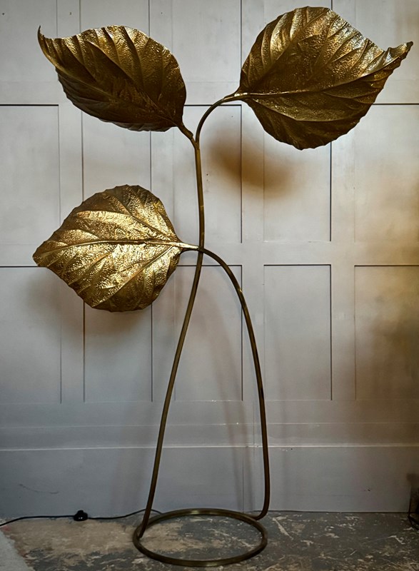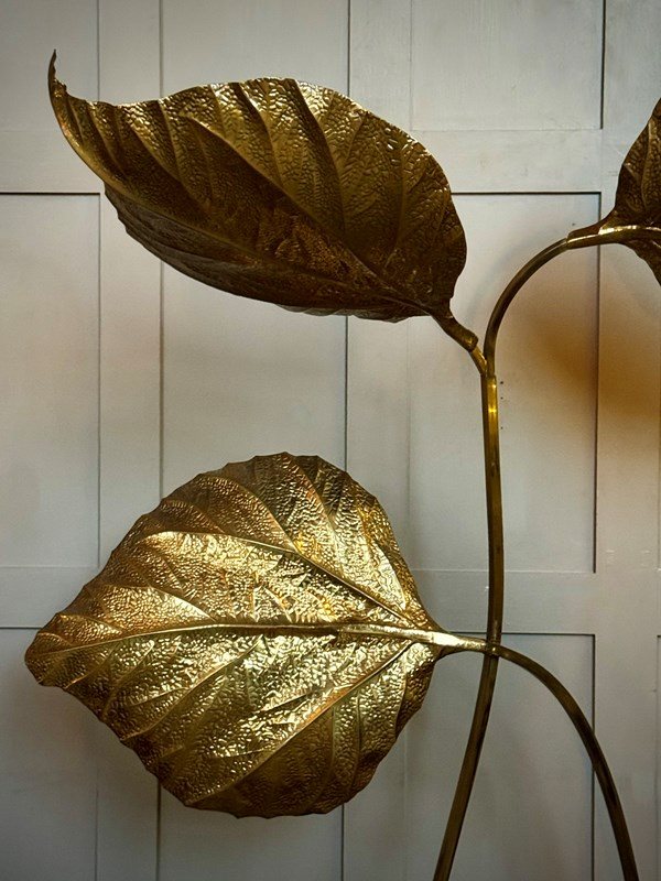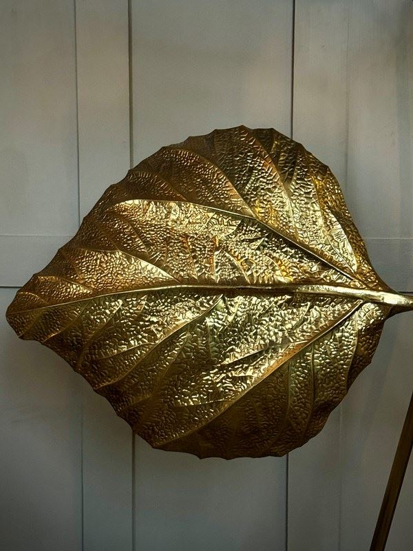 A great example of Tommaso Barbi's iconic pressed brass 3 leaf floor lamp, circa 1970, Italy