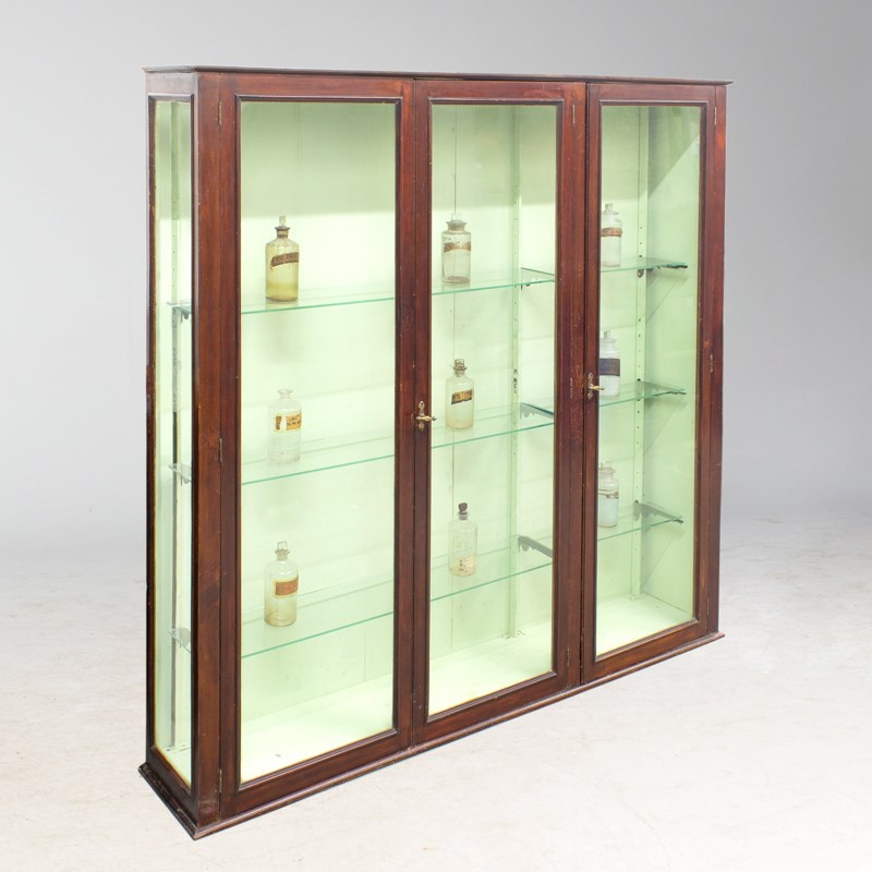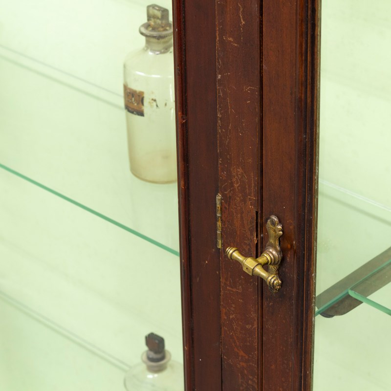 Lovely example of a mahogany jeweller's cabinet with glass shelves and brass hardware.