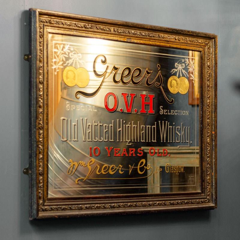 Fabulous quality late 19th century Greer's Highland Whisky pub mirror.