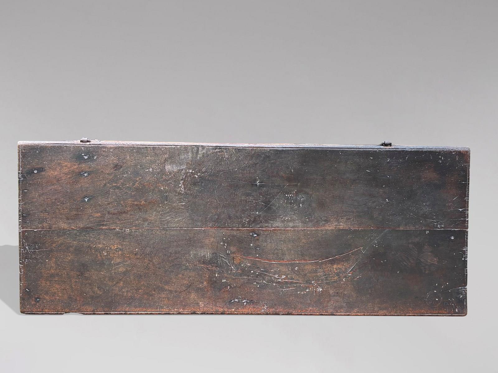 Charming 17th-Century Joined Oak Coffer with Stunning Patina, Lancashire, c.1678