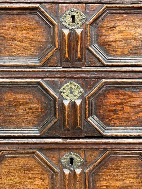 17Th C Oak Geometric Chest Of Drawers