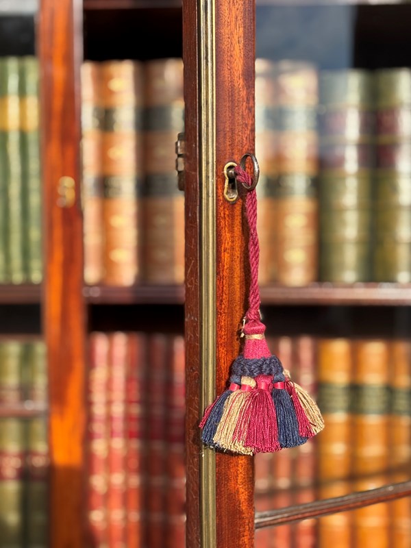 Of excellent quality with a warm, rich patina, this bookcase retains its original keys and working locks and is in lovely, largely untouched condition. The surface has developed a wonderful depth of colour over time, enhancing the warmth and figure of the mahogany, a hallmark of fine pieces from this era. Sturdy, strong and ready to use, it perfectly embodies the English country house look.