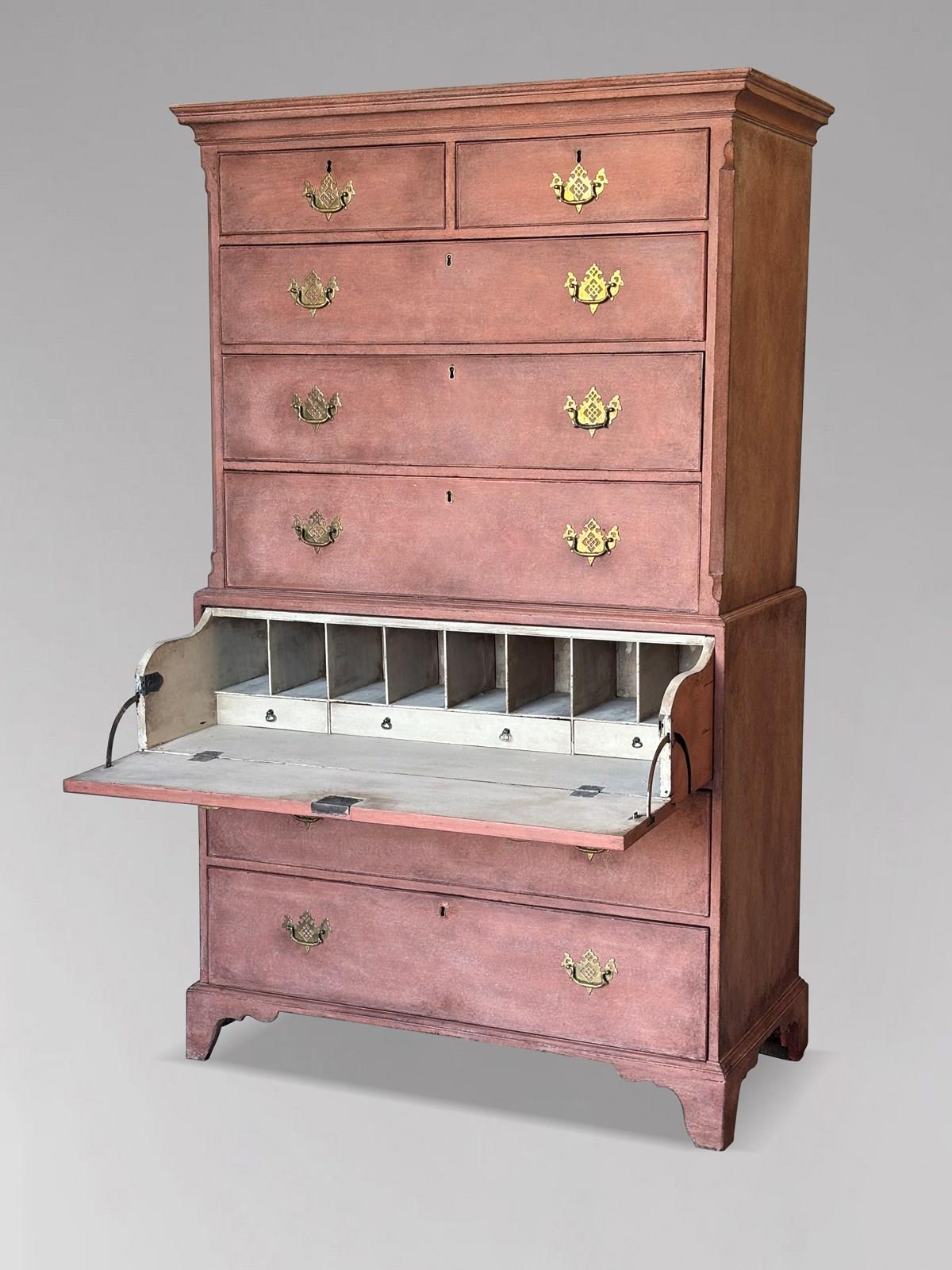 Great Colour Late 18th-Century George III Painted Mahogany Secretaire Chest-on-Chest or Tallboy