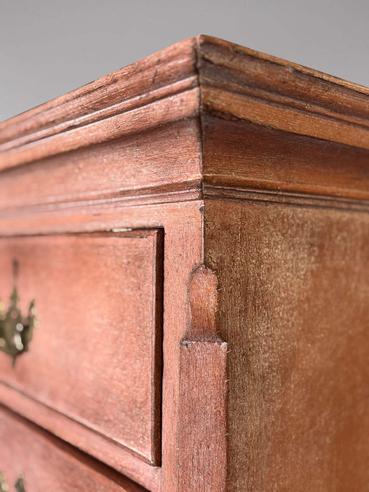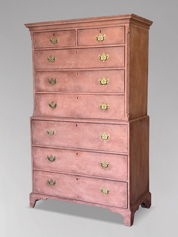 This tallboy has a particularly good colour and patina, the painted surface and mahogany showing the gentle wear and depth expected of a well?kept Georgian piece. It is sturdy, elegant and highly practical, making it suitable for any period or character home. A fine testament to late 18th?century craftsmanship and Georgian design, this painted chest-on-chest or tallboy would make a striking addition to any refined interior. For ease of transport and installation, the piece separates into two sections.