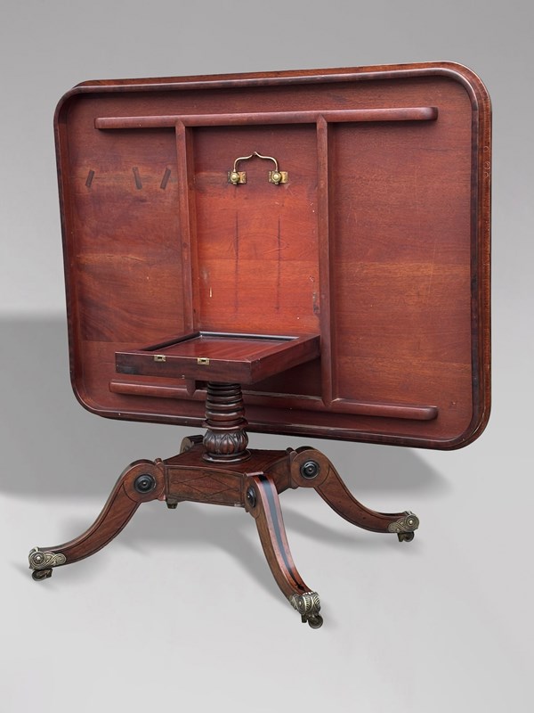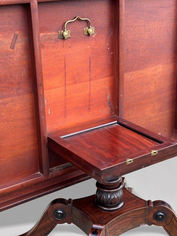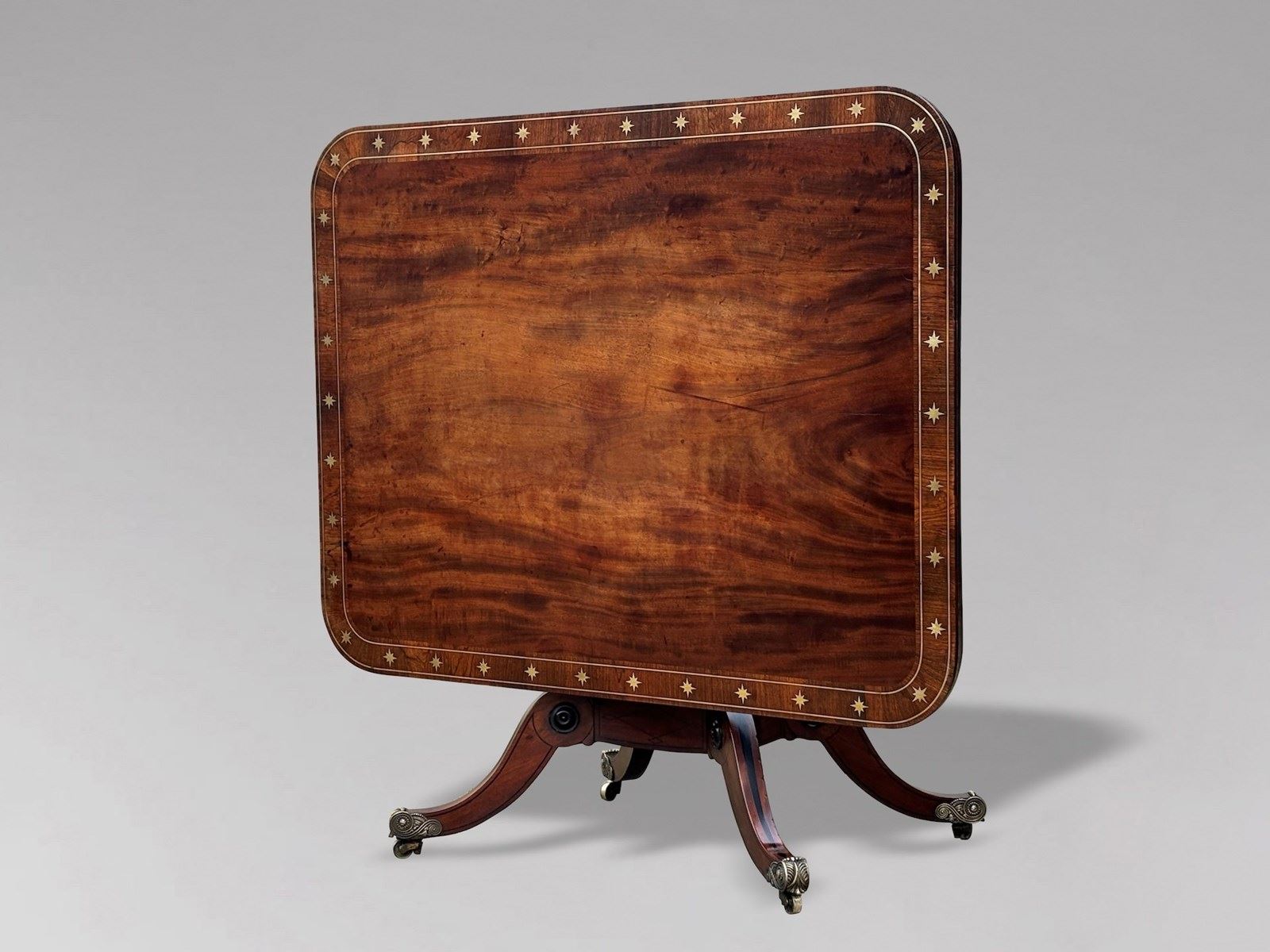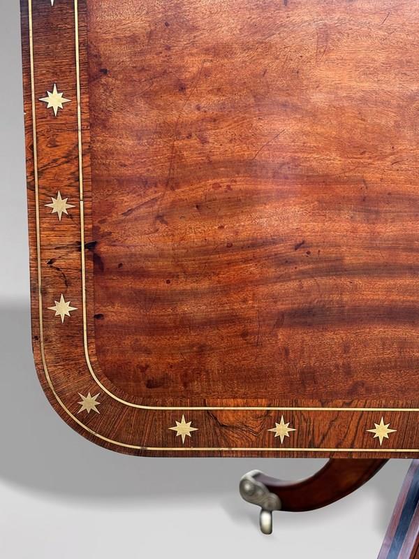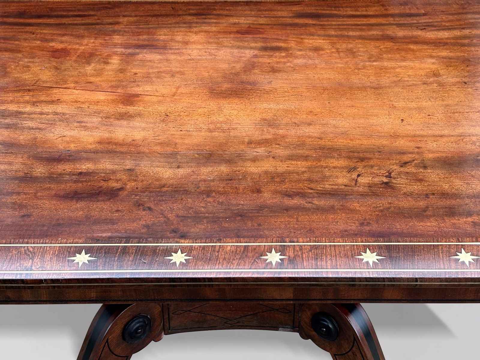 The richly figured mahogany has developed a deep, warm patina, beautifully complemented by the rosewood cross banding and delicate brass and ebony inlay throughout. The table remains in superb original condition, displaying the colour, surface and character so prized by collectors and decorators alike.