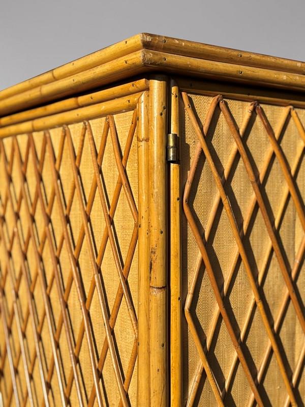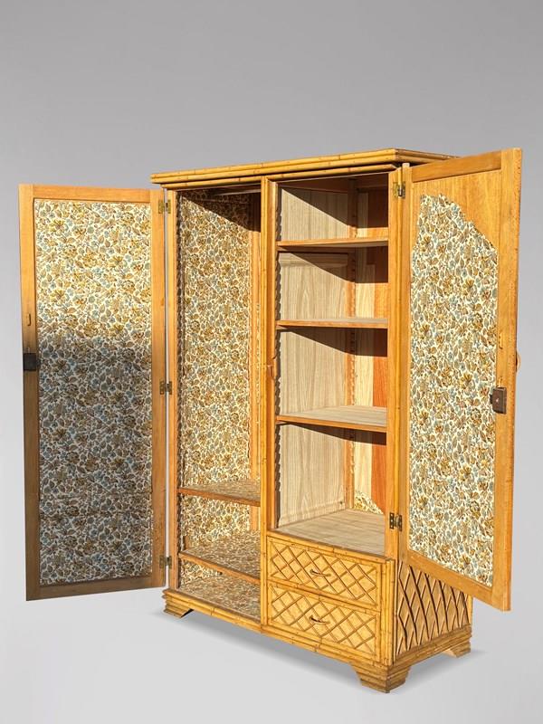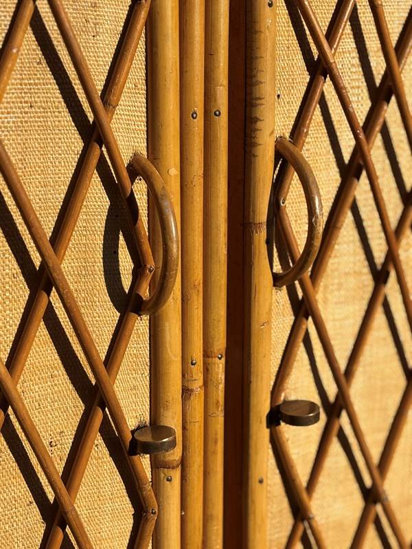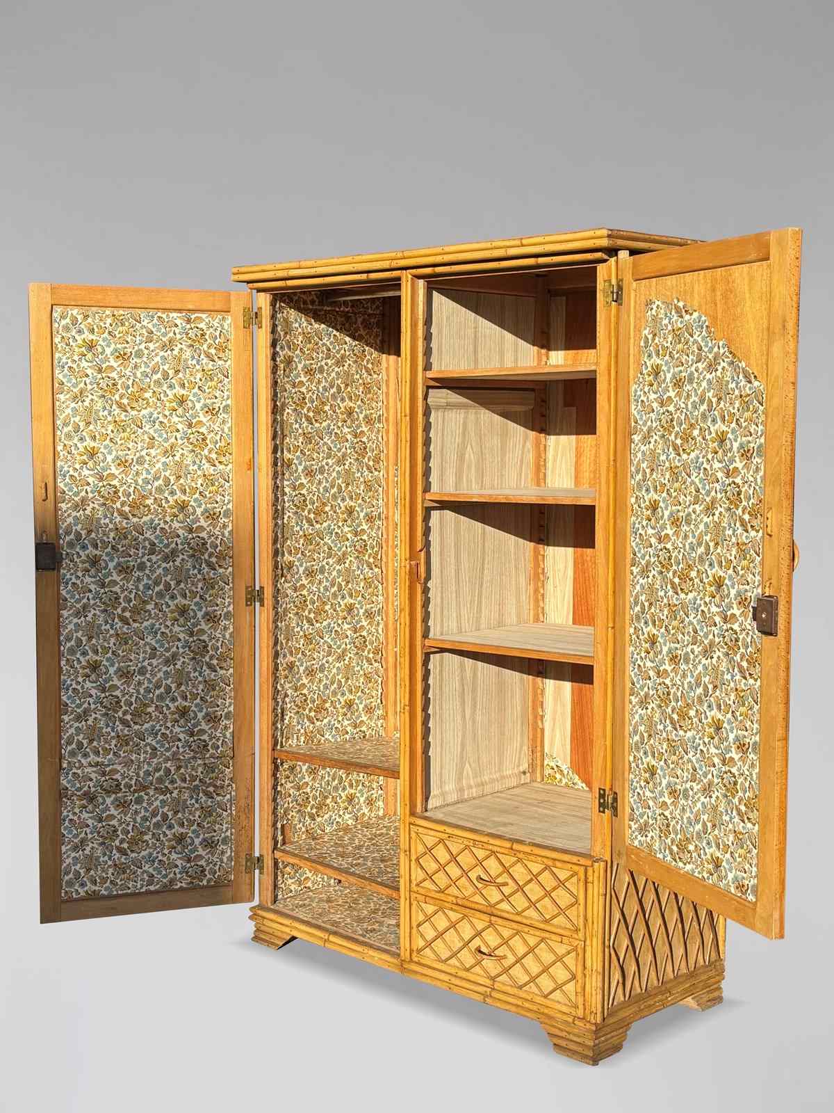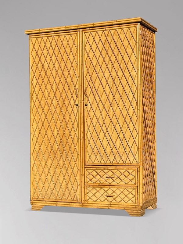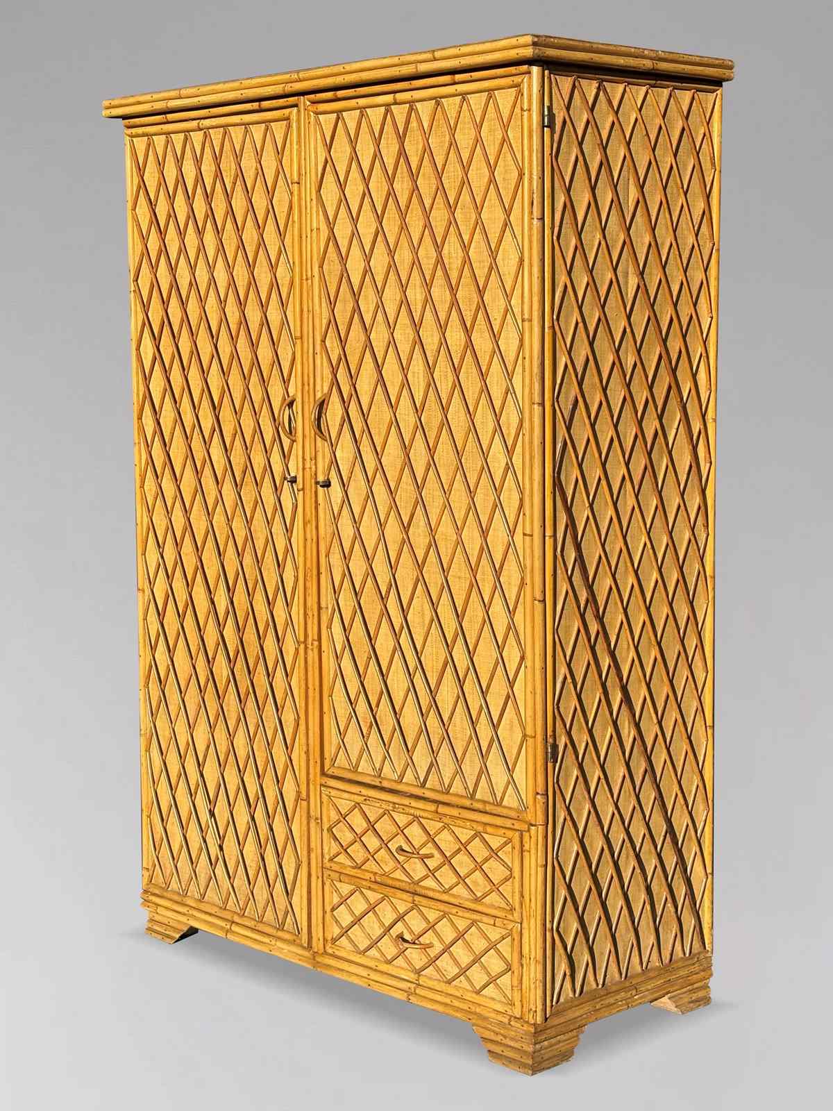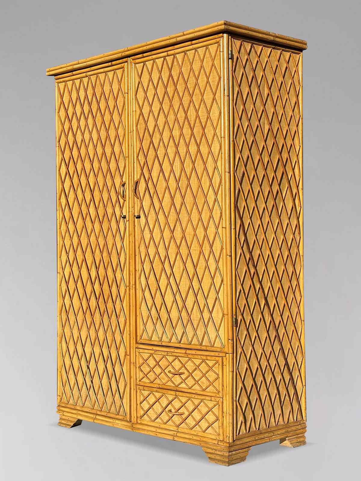 Charming 1970s French Riviera Bamboo & Wicker 2-Door Wardrobe