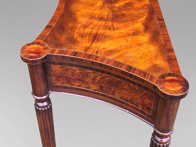 Although this is not the type of piece I usually offer, I was particularly struck by the standard of craftsmanship, the sharpness of the inlay and its strong decorative presence. I acquired this console from a large private estate in Surrey, together with a longer console table, a large coffee table, a chest of drawers and a pair of side tables, all in the same walnut with matching inlay and the same high level of workmanship.