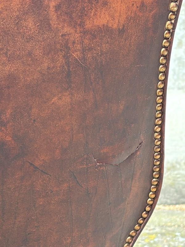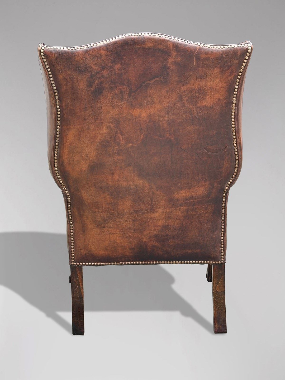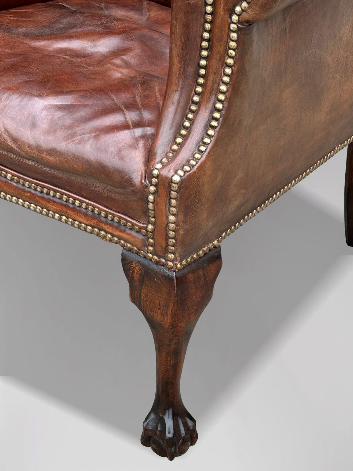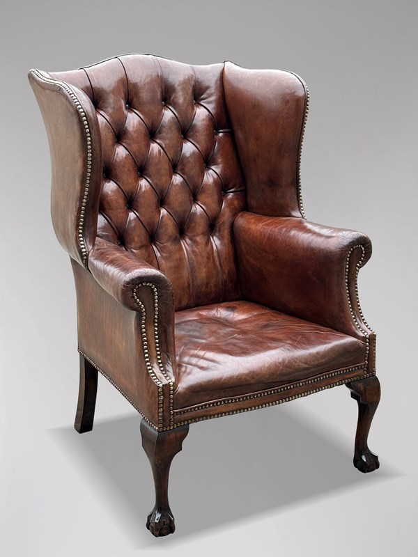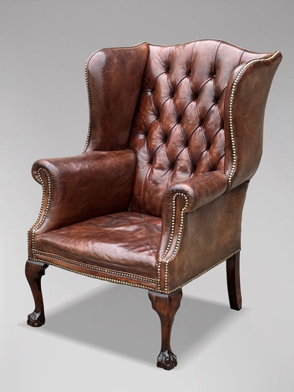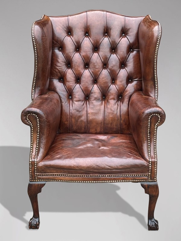 19Th C Brown Leather Wing Armchair