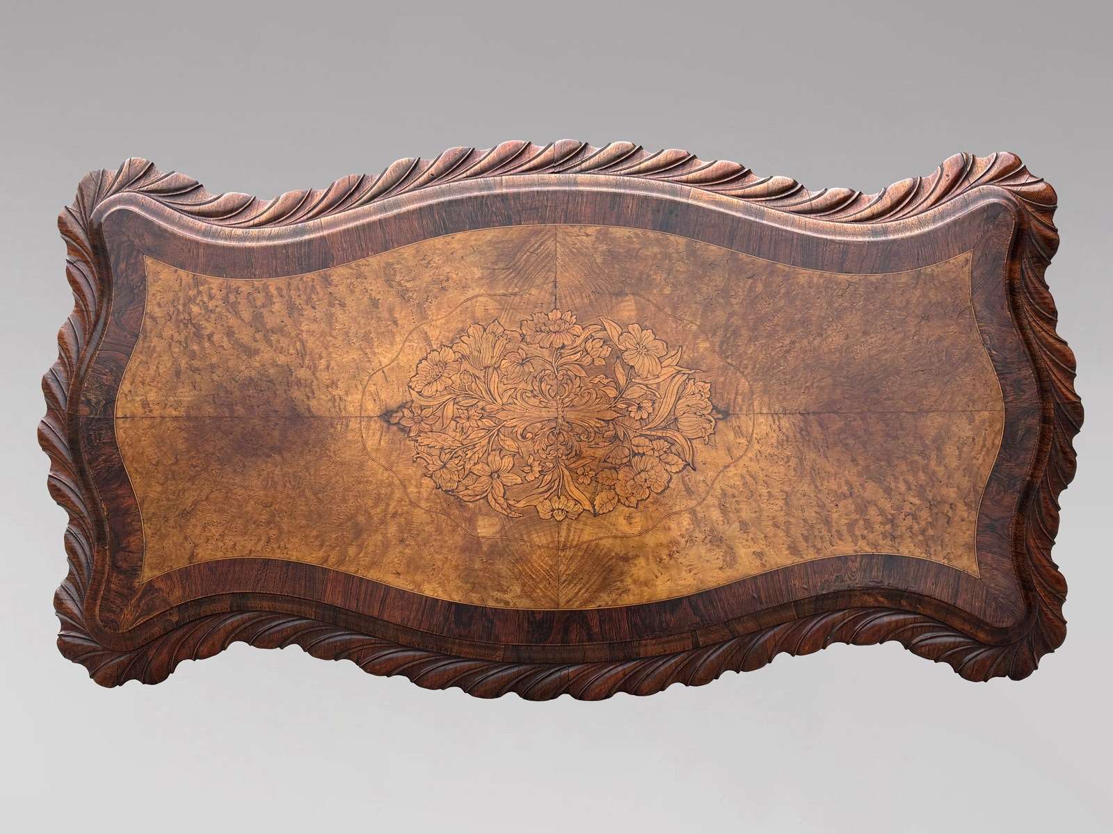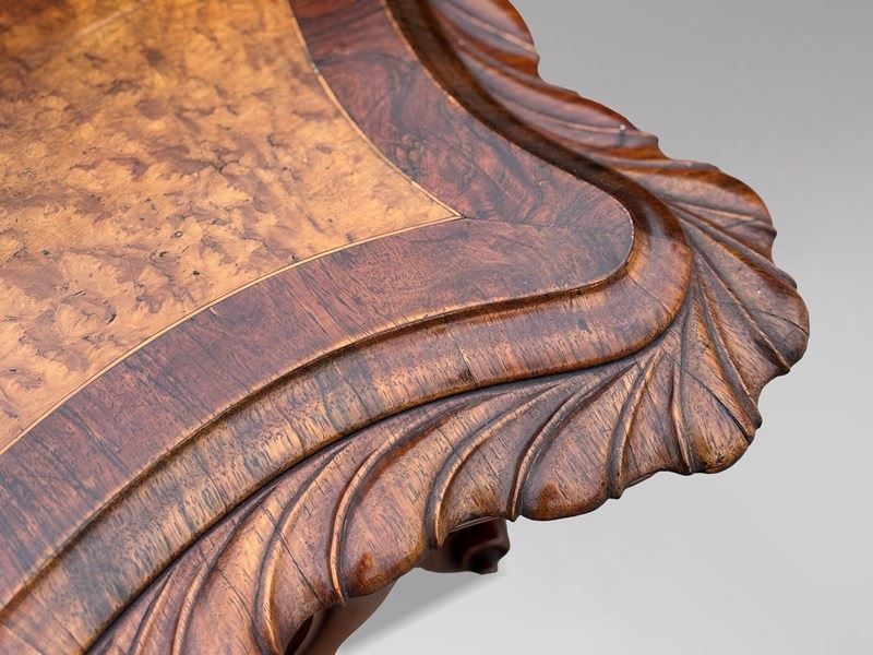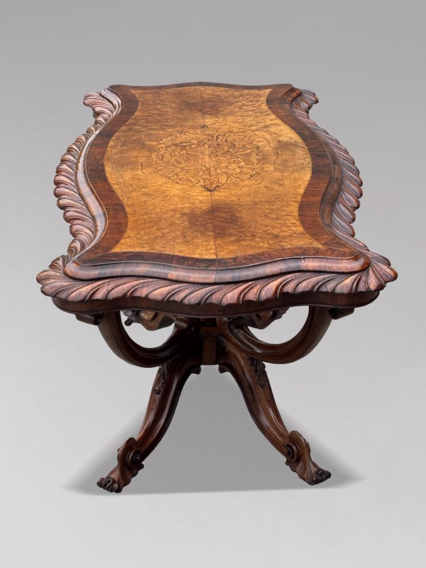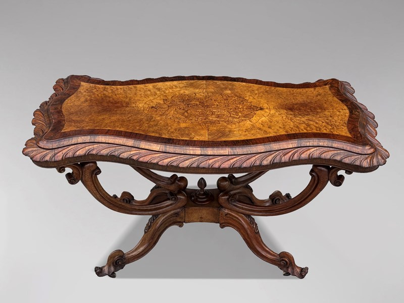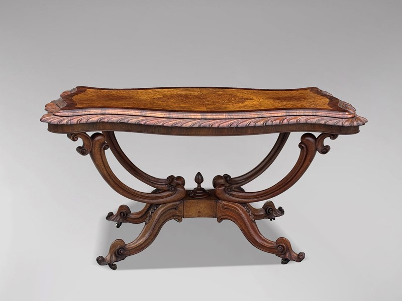 Very Fine & Elegant Mid 19th-Century Victorian Burr Walnut Carved Centre Table