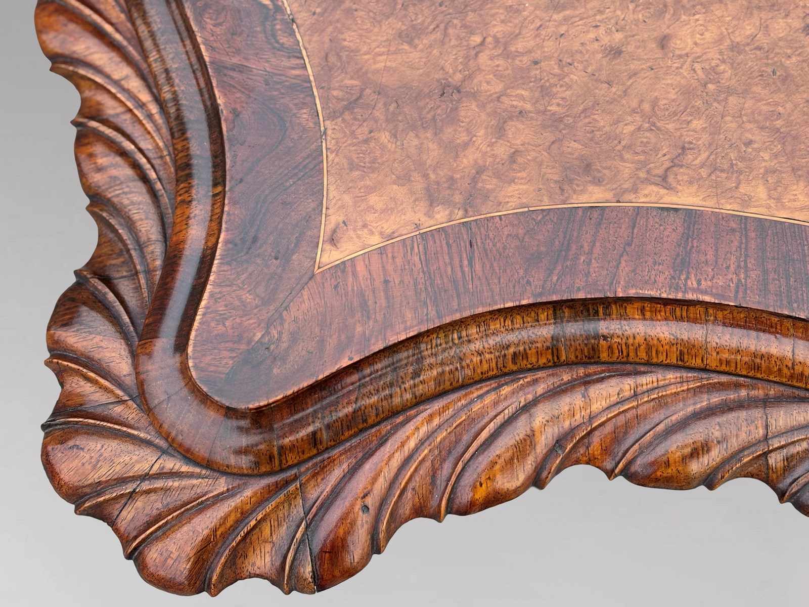 19Th C Burr Walnut Carved Centre Table