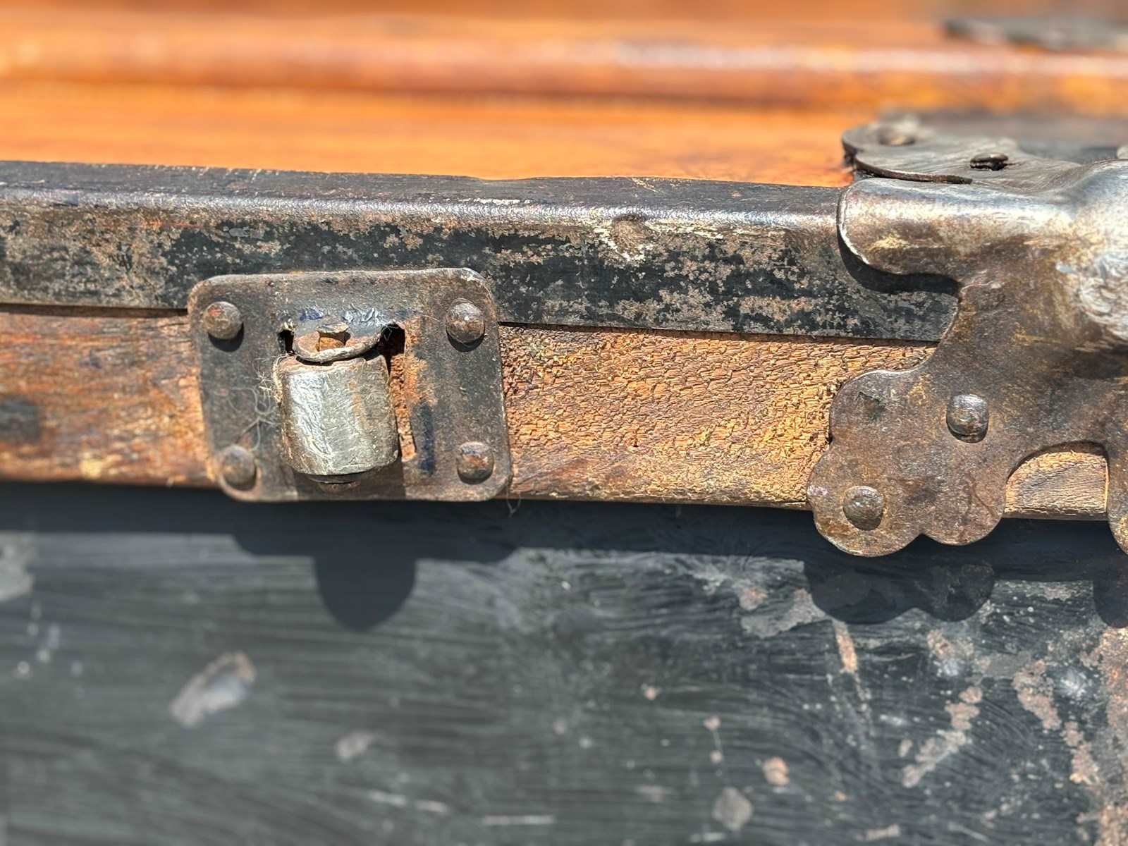 This fascinating antique chest boasts a superb appearance and a functional interior. It features solid joints and construction and is delivered ready for use in your home. The exceptional craftsmanship of this trunk makes it a true treasure—both well-built and aesthetically pleasing, it is a useful addition to any space.