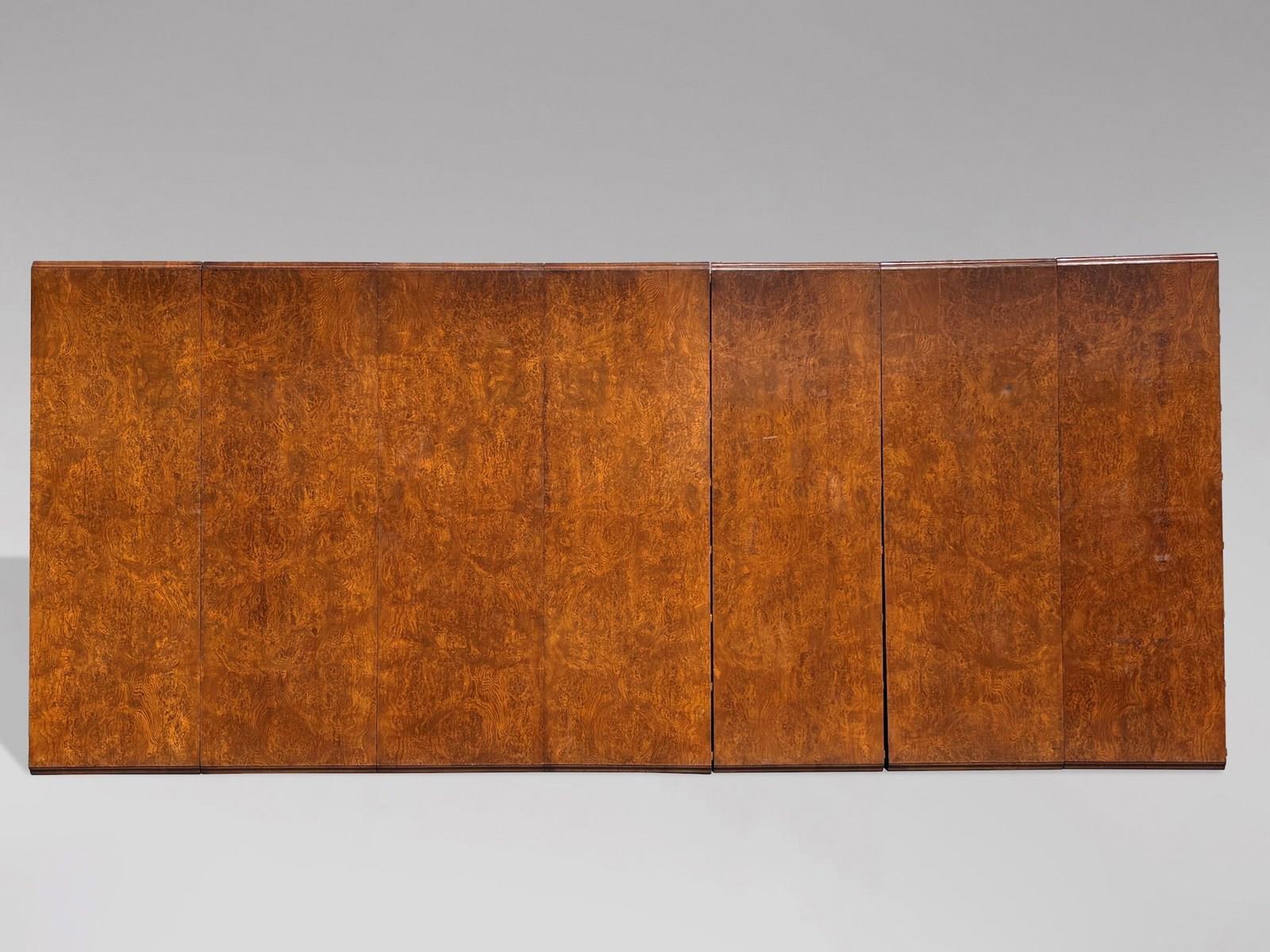 The seven original leaves (each approximately 60 cm) allow a remarkable degree of flexibility, taking the table from an intimate setting to a grand scale capable of seating from 8 up to around 28 diners in great comfort, ideal for both private dining rooms, conference rooms and distinguished hospitality settings.