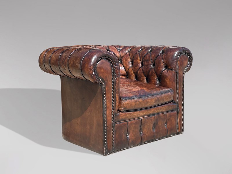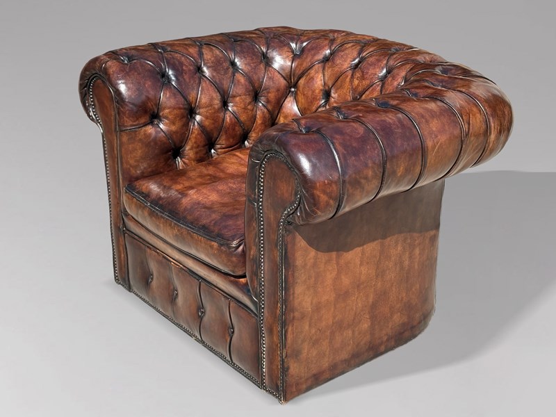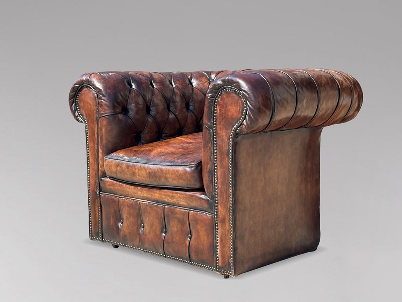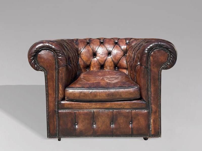 Stunning Quality Early 20th Century Brown Leather Chesterfield Armchair
