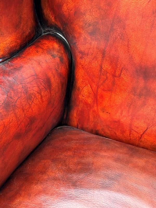 A Handsome Late 18th Century George III Period Burgundy Leather Library Wing Armchair, C1790