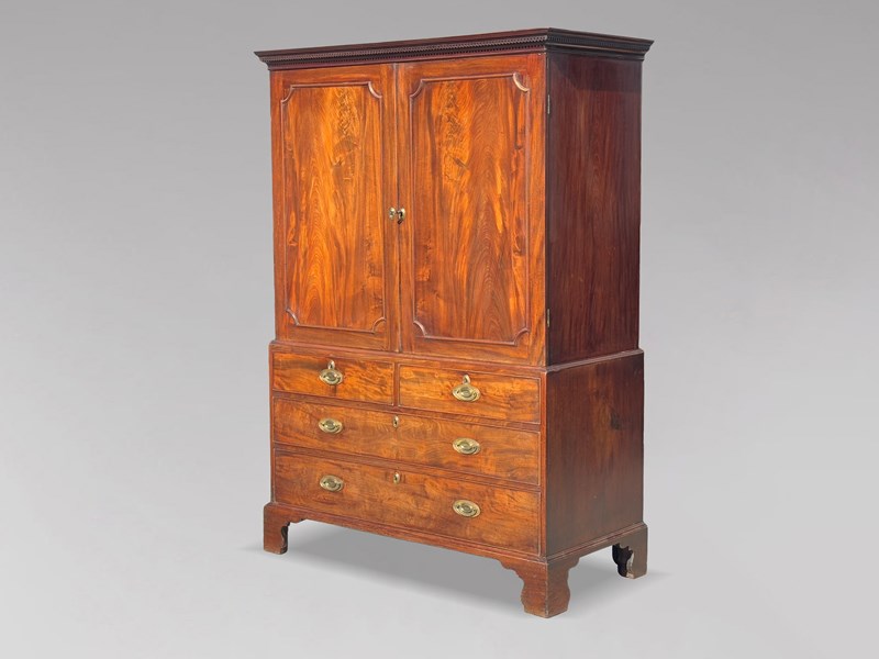 Fine Quality 18th Century George III Period Mahogany Linen Press Cupboard