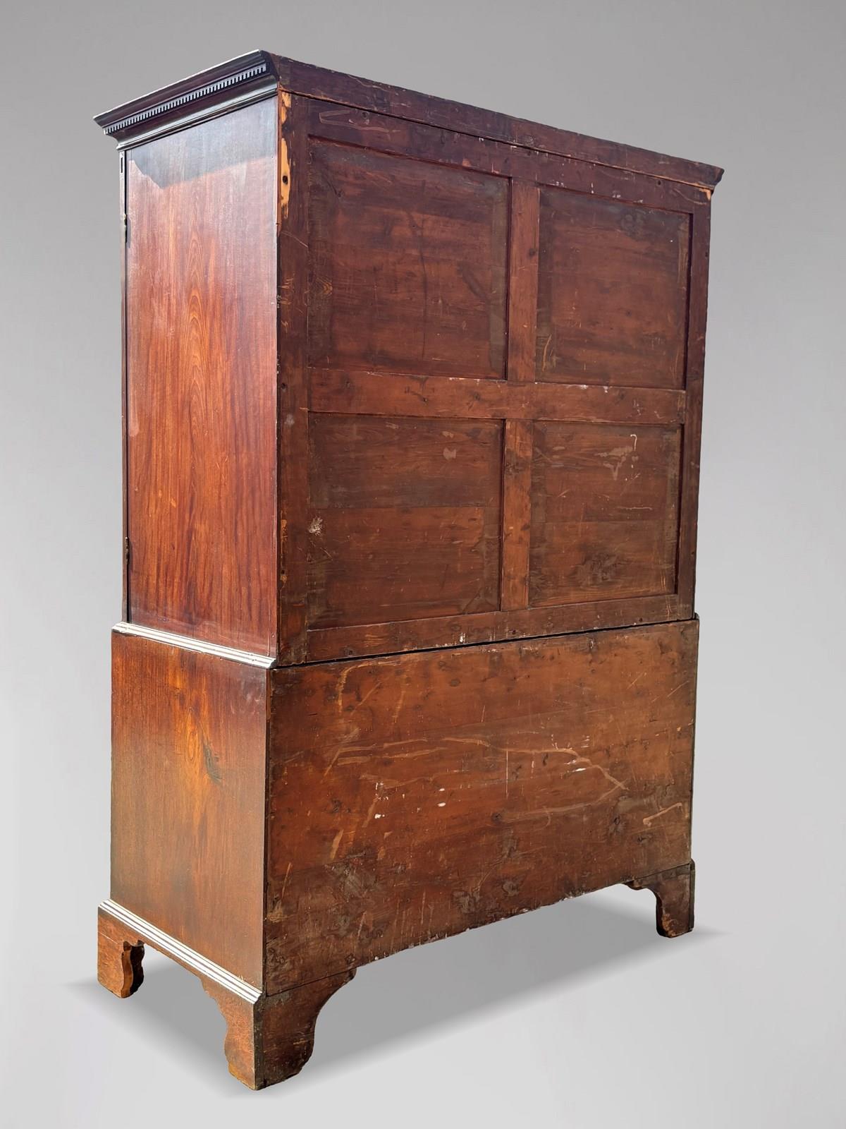 A fine quality 18th-century George III period mahogany linen press cupboard. A stunning example of Georgian craftsmanship that embodies both elegance and functionality.