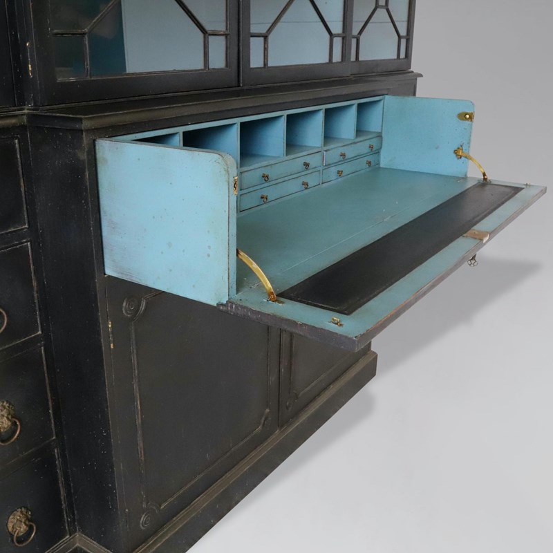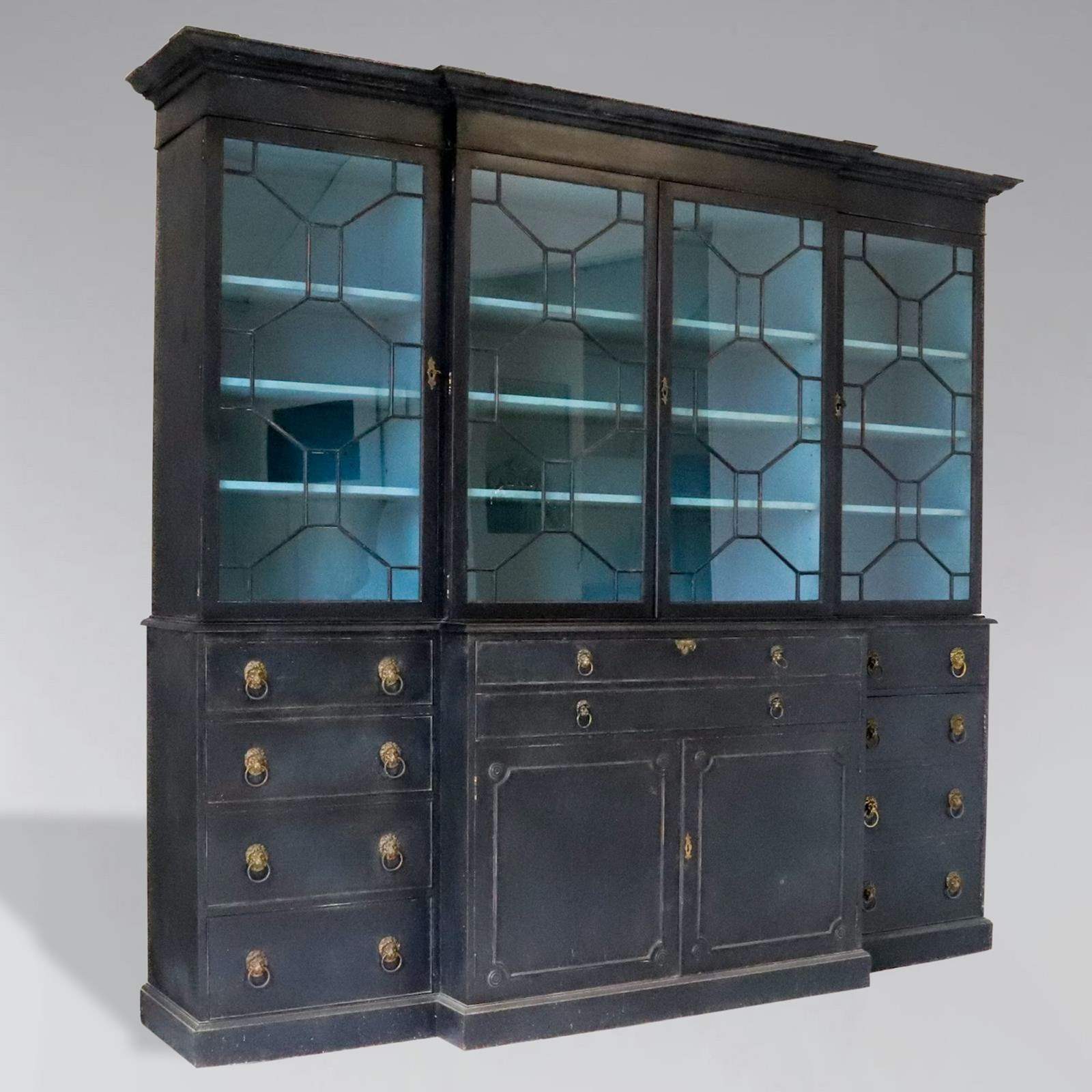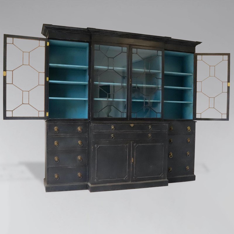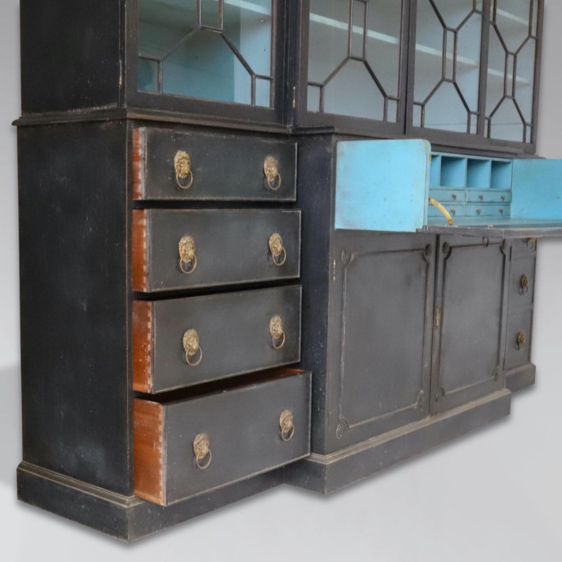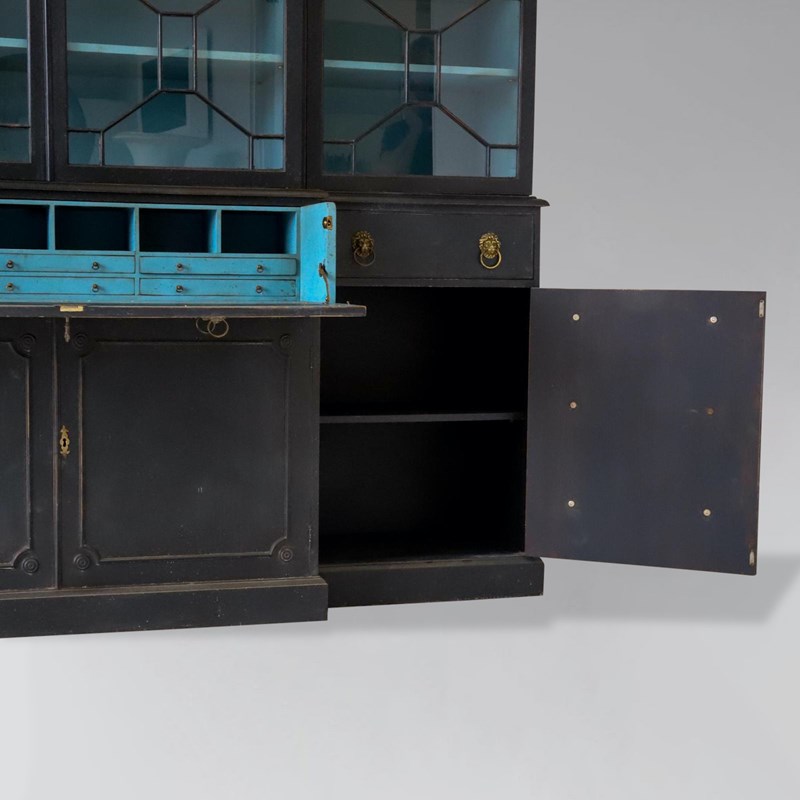 Decorative Early 20th-Century Painted Mahogany 4-Door Secretaire Breakfront Library Bookcase