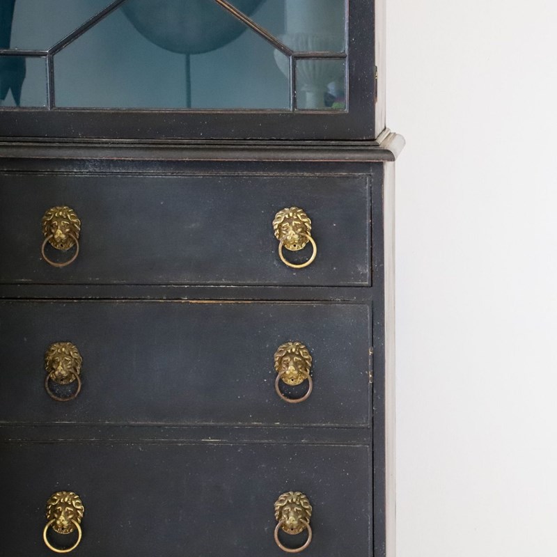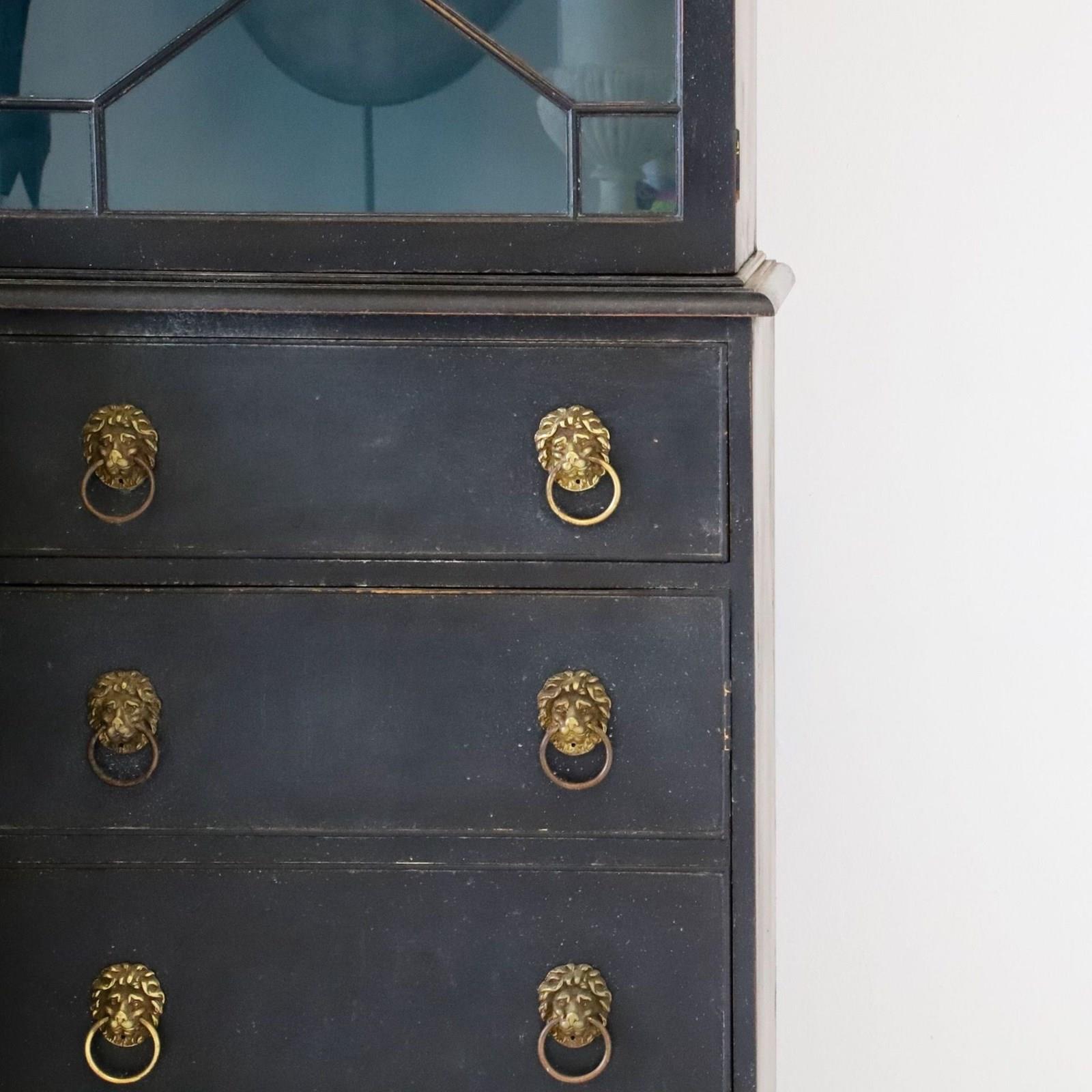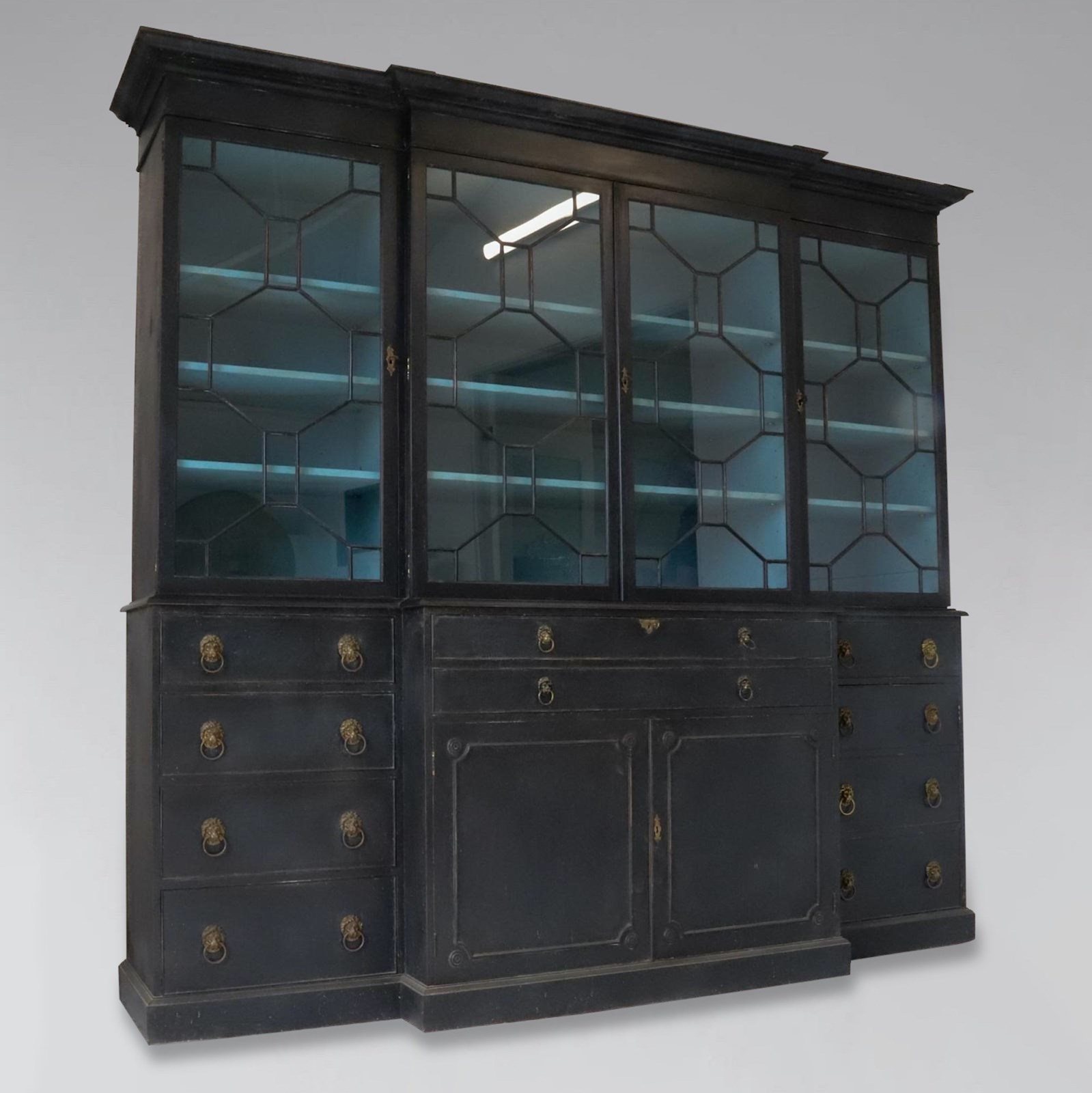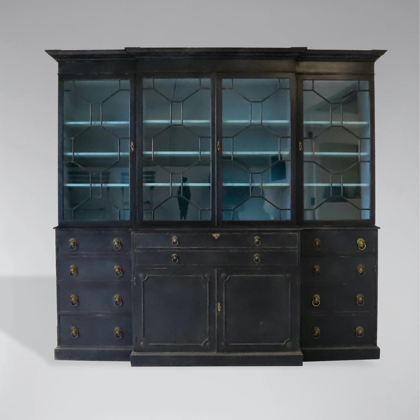 Decorative Early 20th-Century Painted Mahogany 4-Door Secretaire Breakfront Library Bookcase