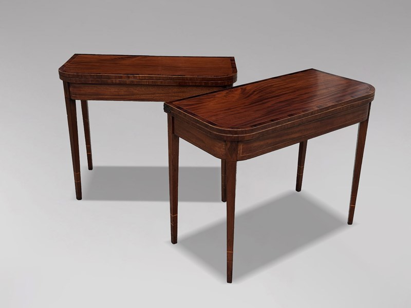 Fine Quality Pair of Late 18th Century George III Period Mahogany & Inlay Folding Console Tea Tables