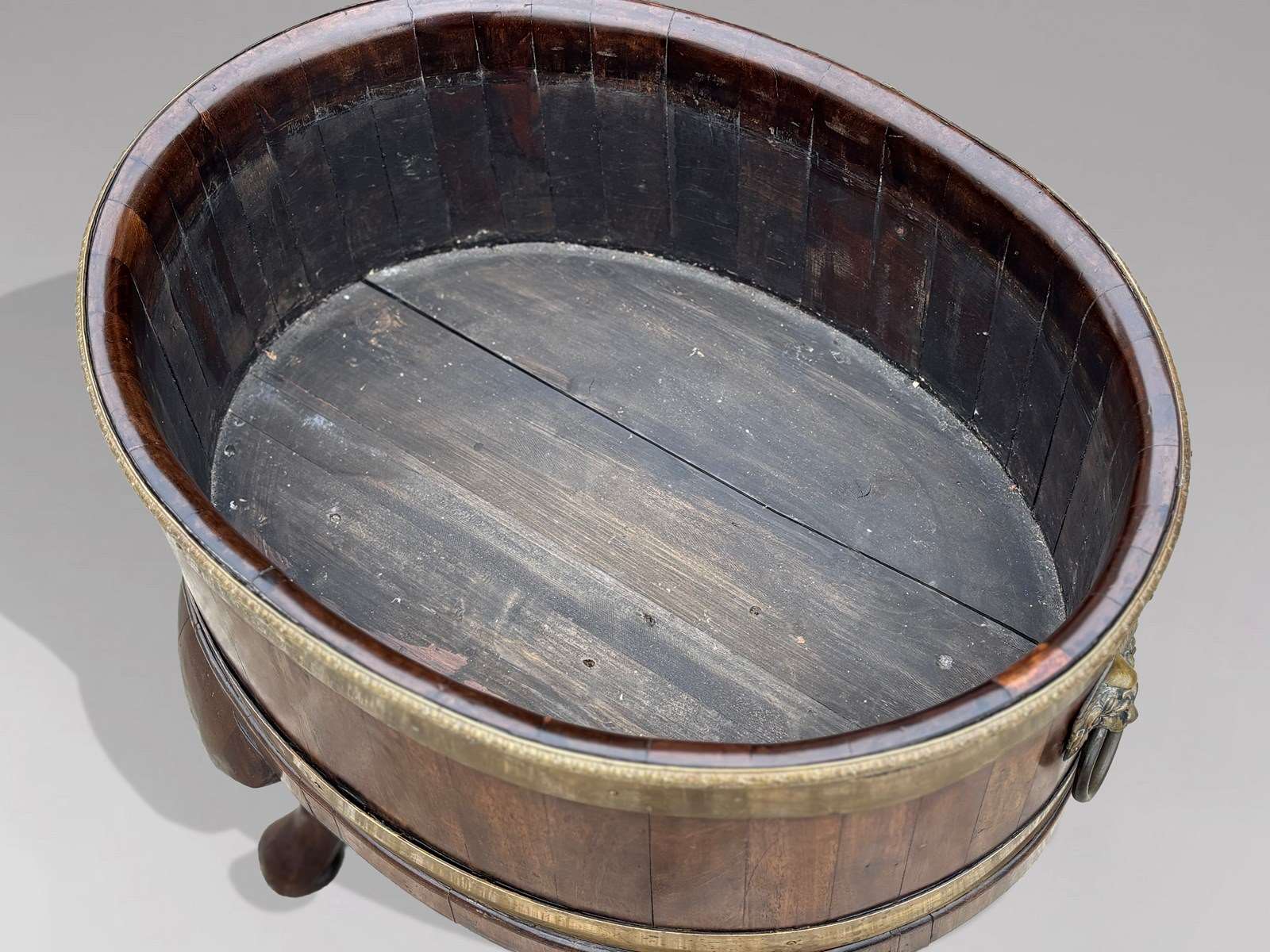 A Rare Pair of Georgian Mahogany Oval Brass-Bound Wine Coolers with Original Liners & Lion-Head Ring Handles C.1760
