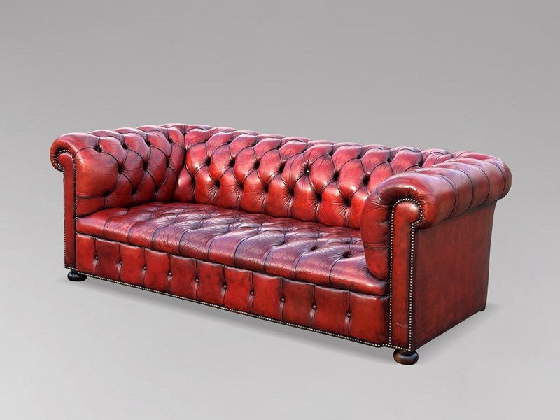Red Leather 3 Seater Chesterfield Sofa
