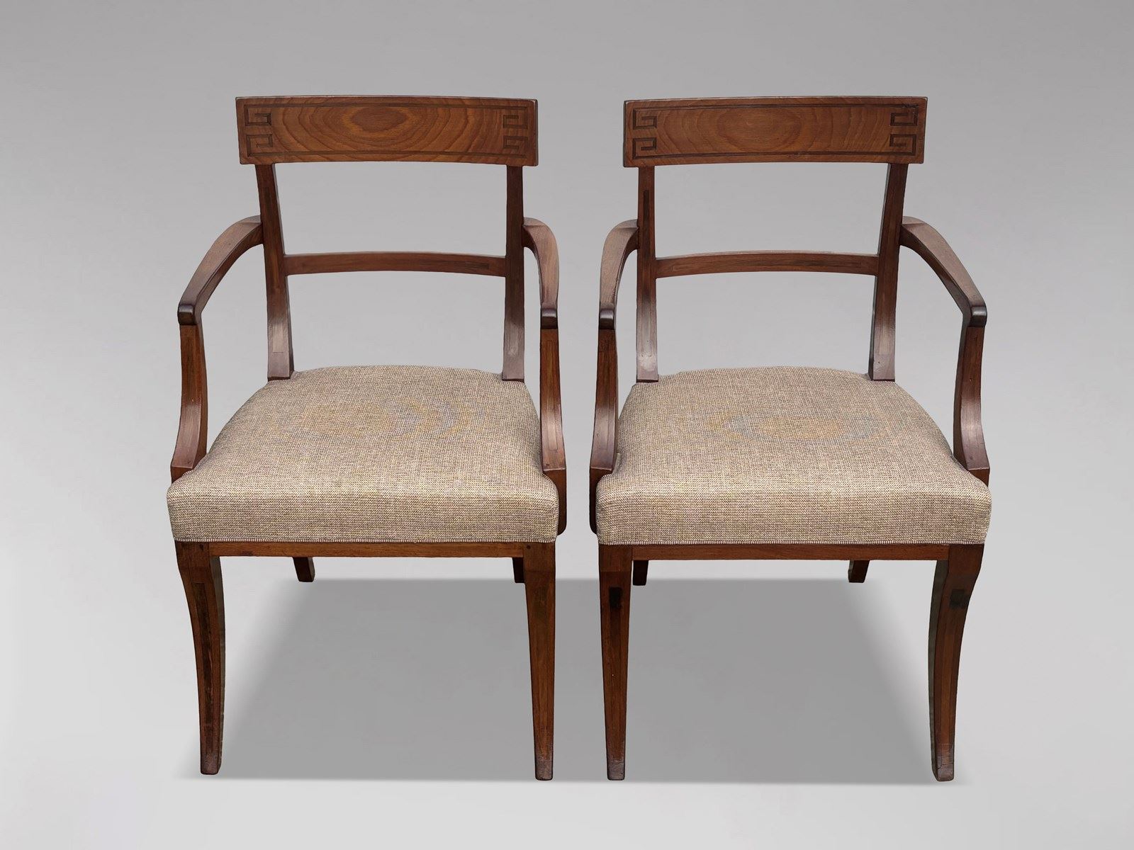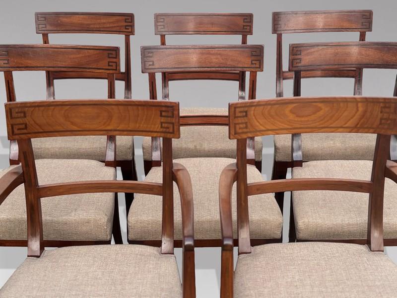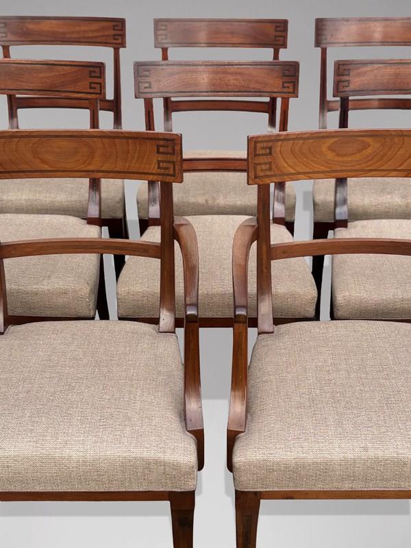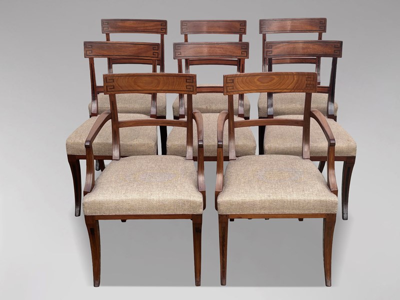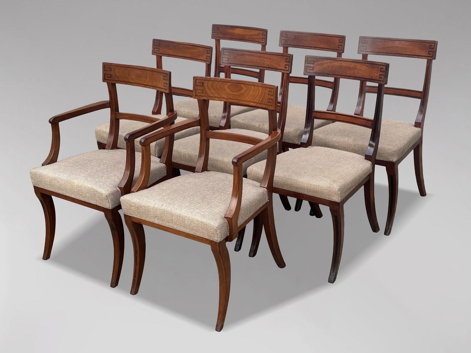 A Fine Quality Set of 8 Early 19th-Century Regency Period Mahogany & Ebony Inlaid Dining Chairs