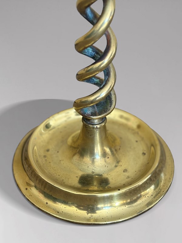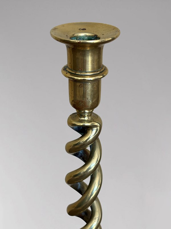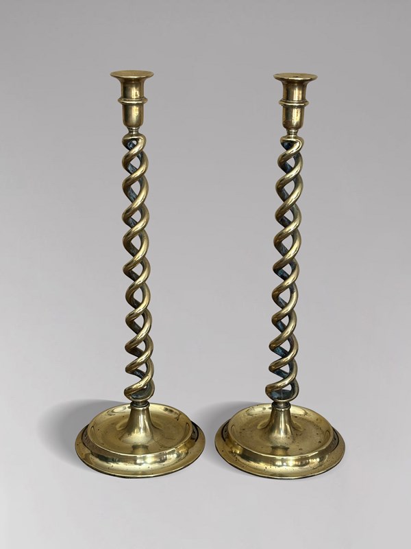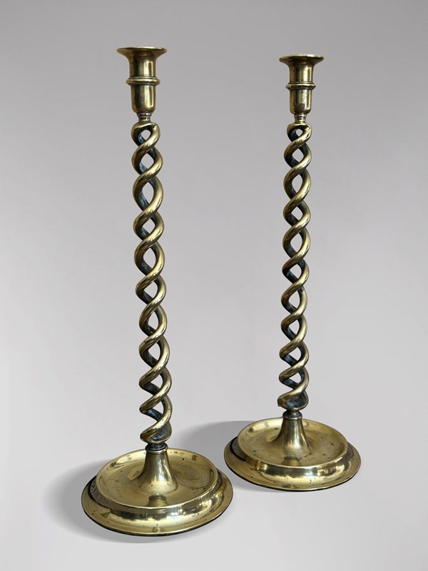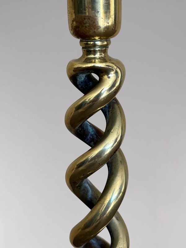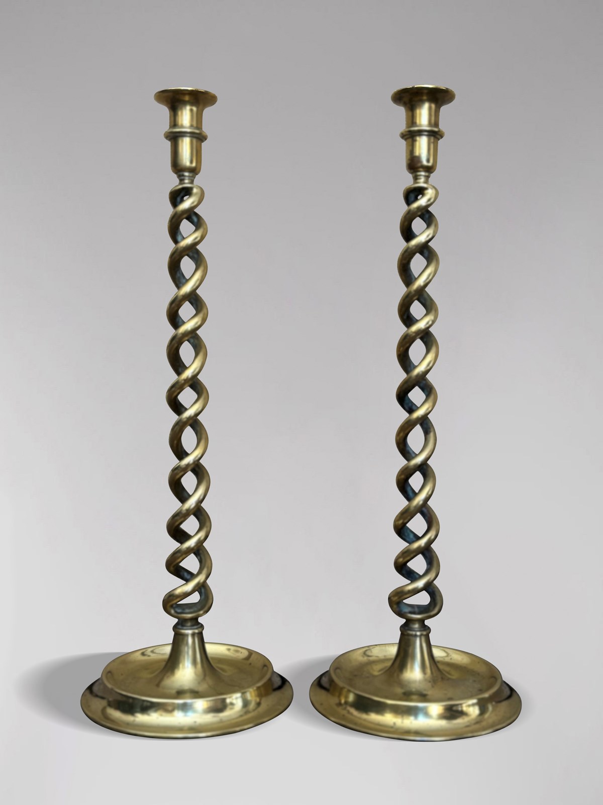 Tall Pair of 19th Century Brass Barley Twist Candlesticks