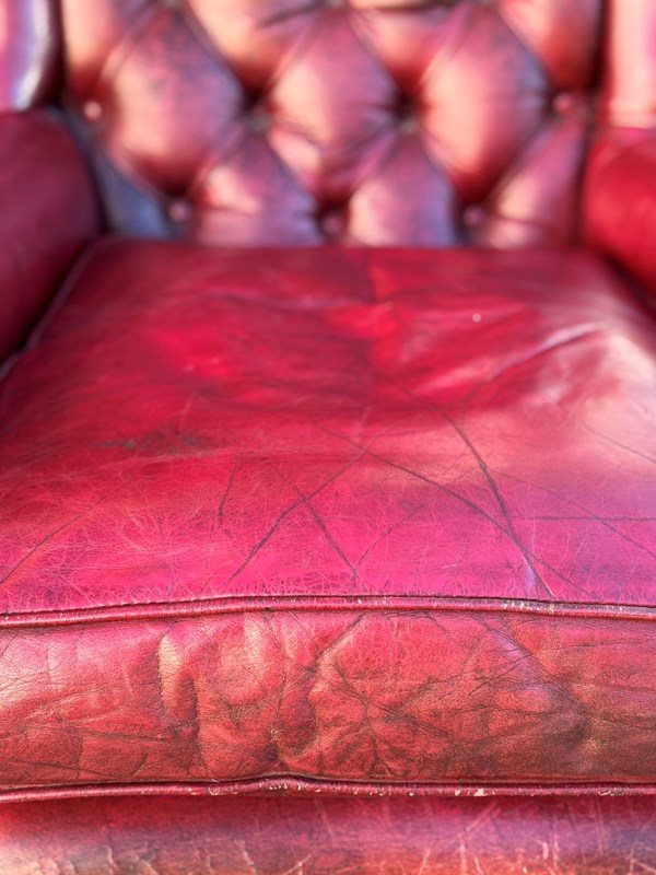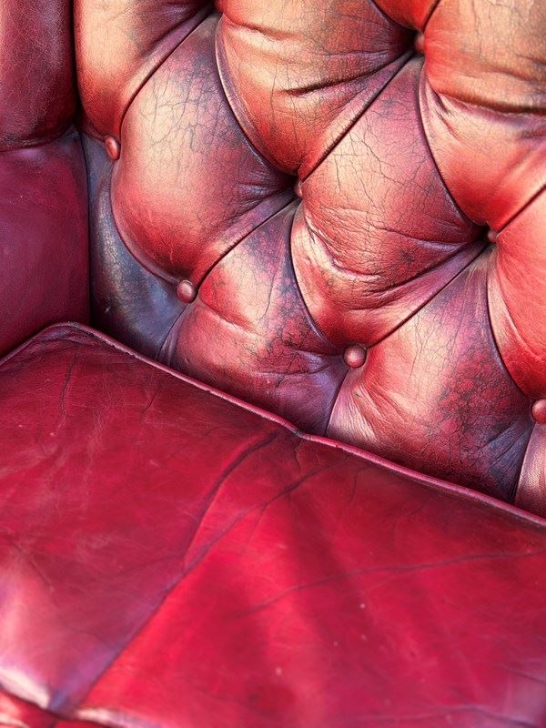 In very good original condition, this armchair offers both comfort and aesthetic charm. Its untouched red burgundy colour, showcases a fantastic hue and patina that can only be achieved through years of care and maintenance.