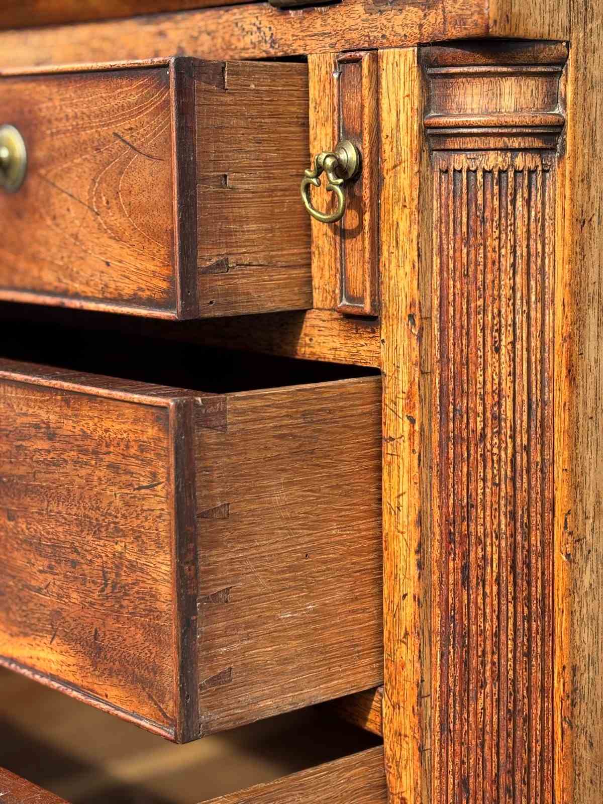 The figured mahogany exhibits a rich, warm patina. This bureau is not only a testament to exceptional craftsmanship but also a stunning example of early Georgian design, making it an ideal piece for any refined interior. Its combination of practicality and aesthetic charm makes it an ideal addition to any traditional or contemporary setting.
