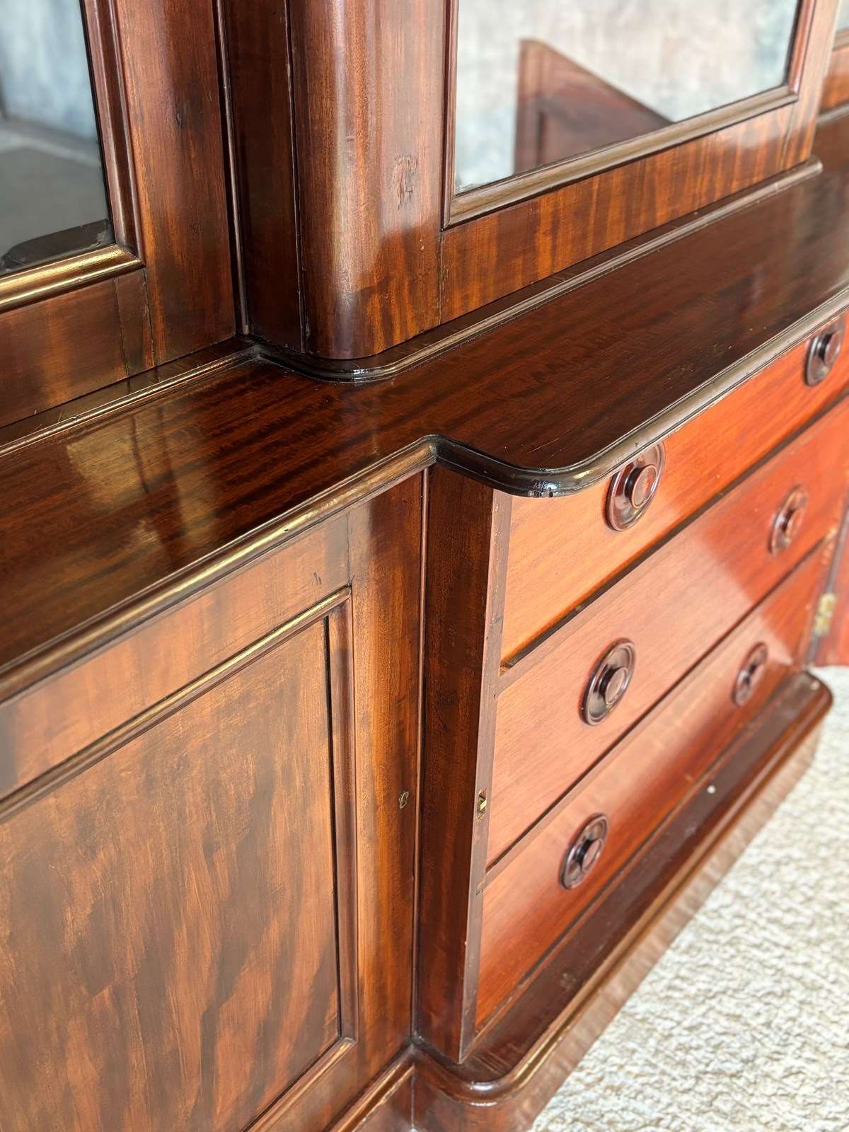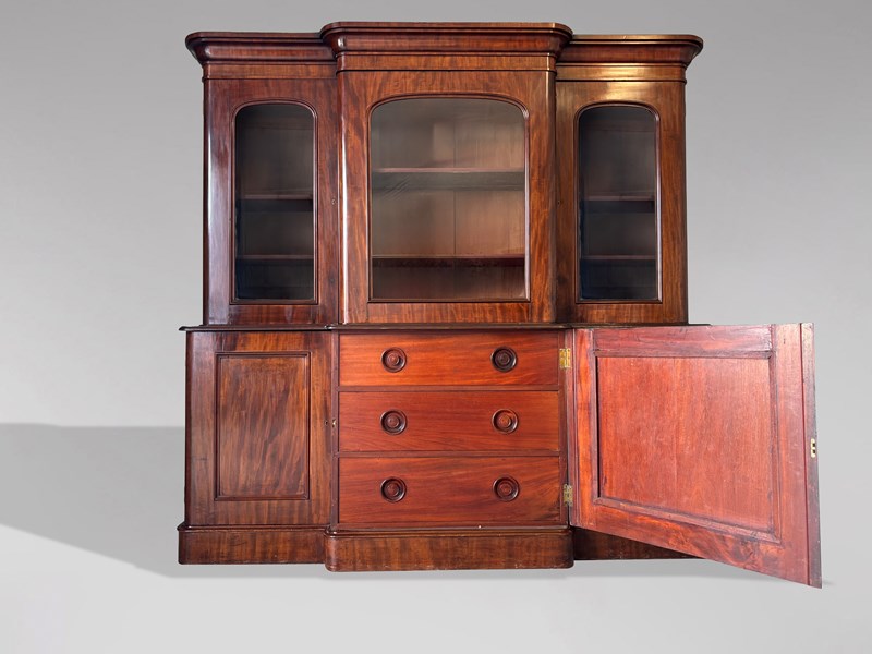 Quality 19th-Century Victorian Figured Mahogany Breakfront 3-Door Library Bookcase