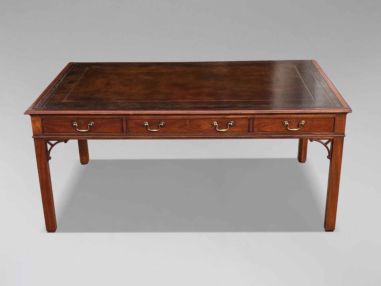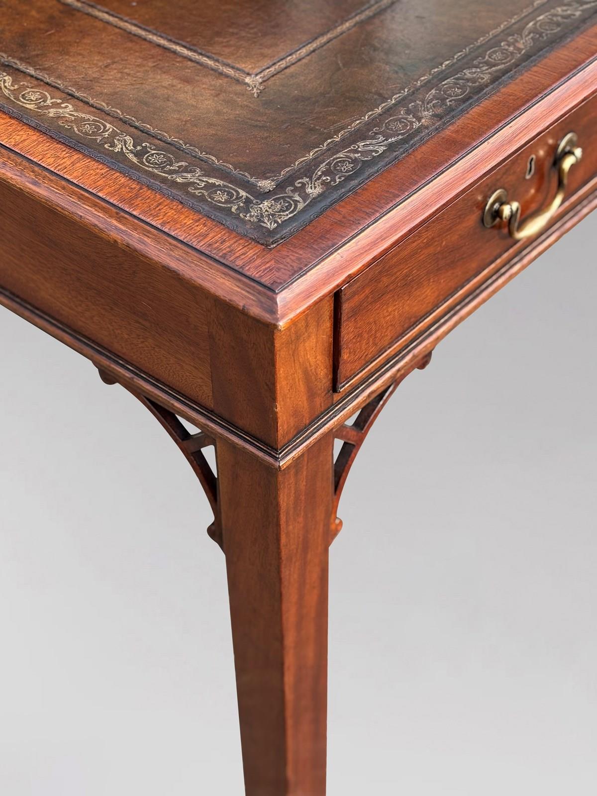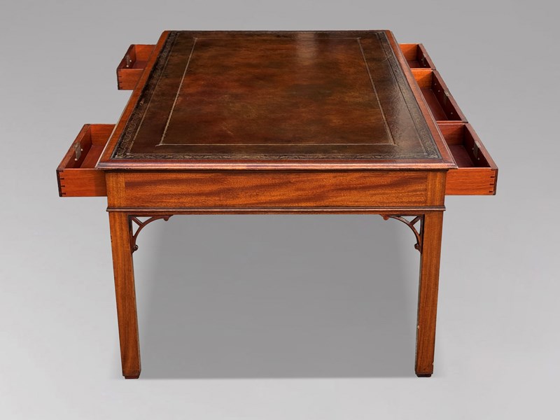 A superb 20th century Chippendale George III style mahogany partners writing table by the renowned maker William Tillman.