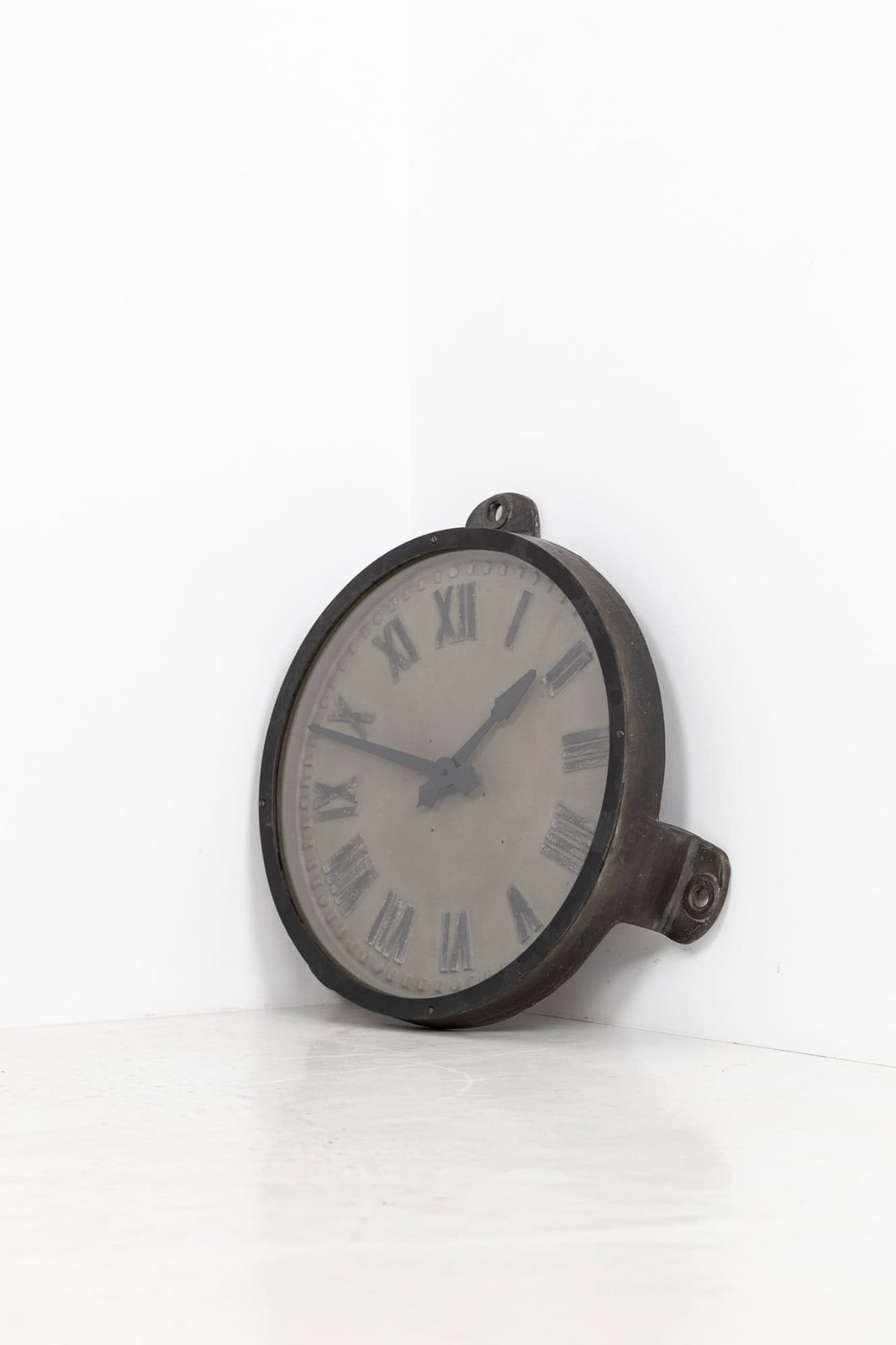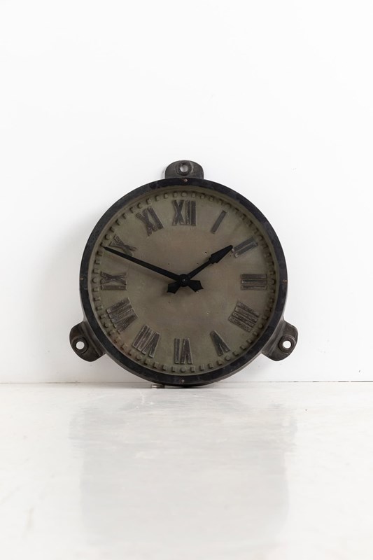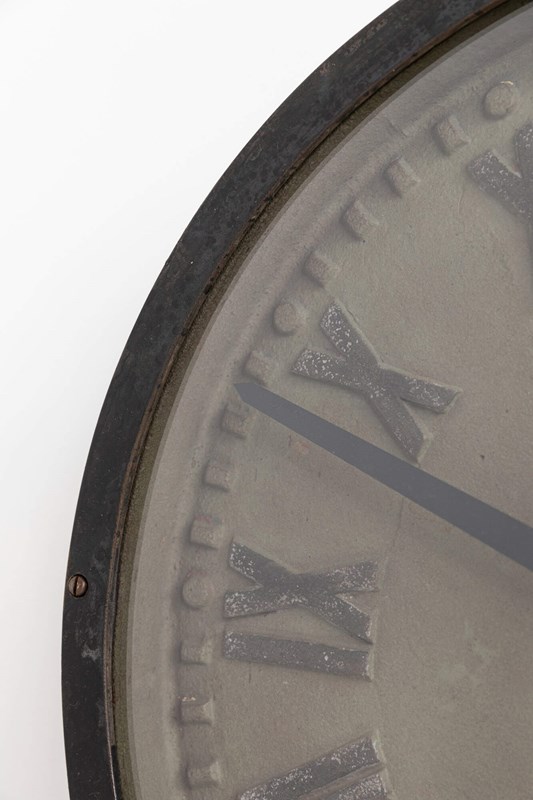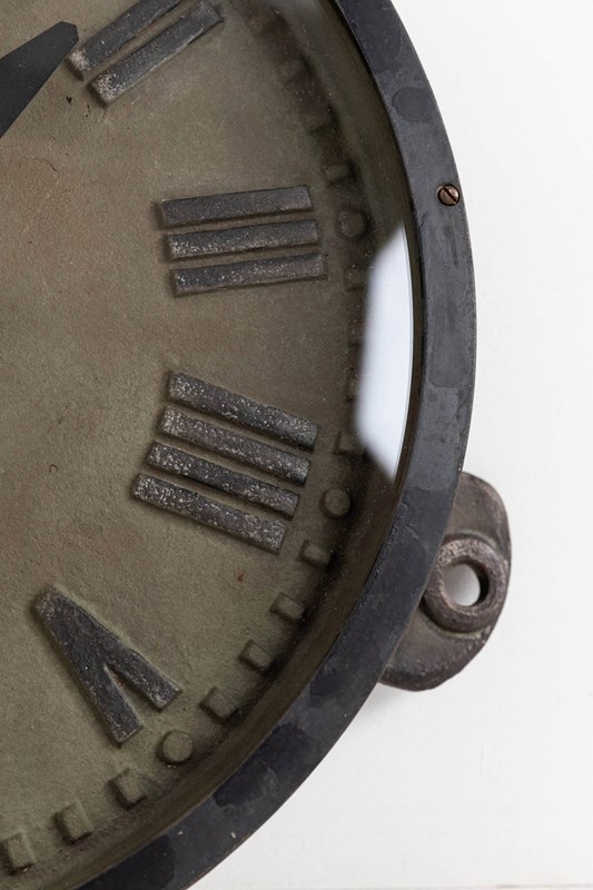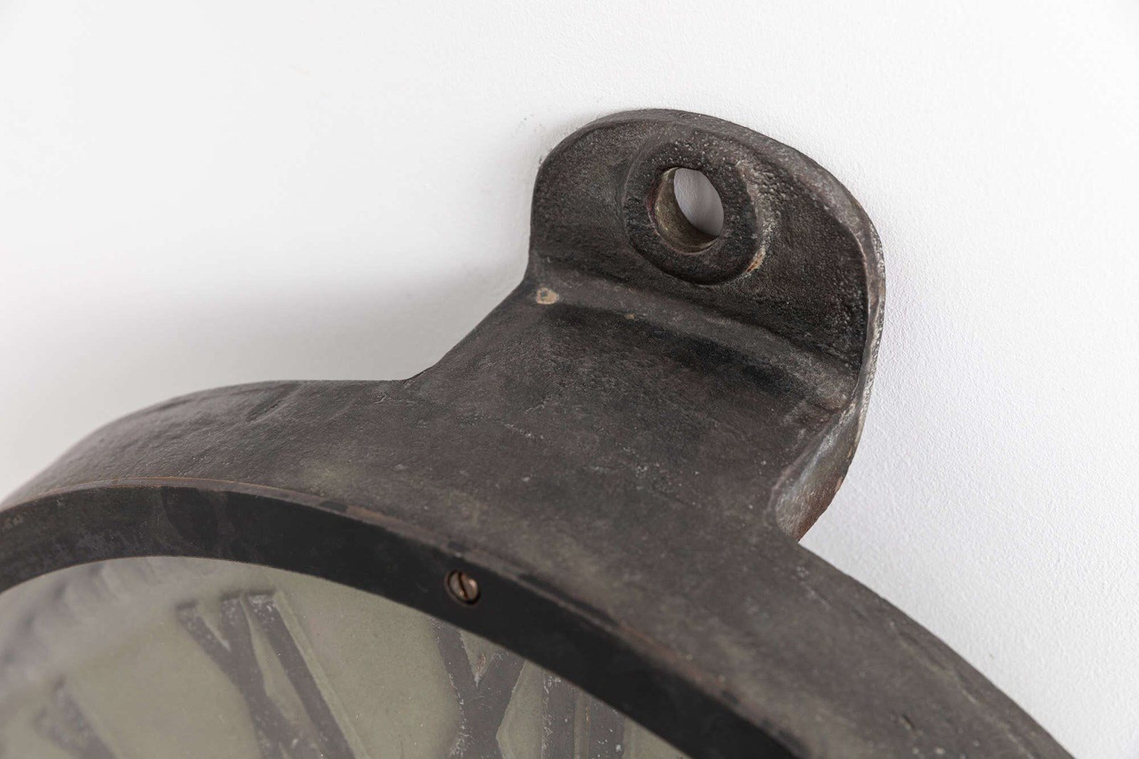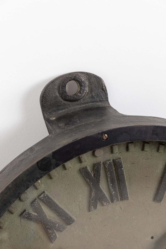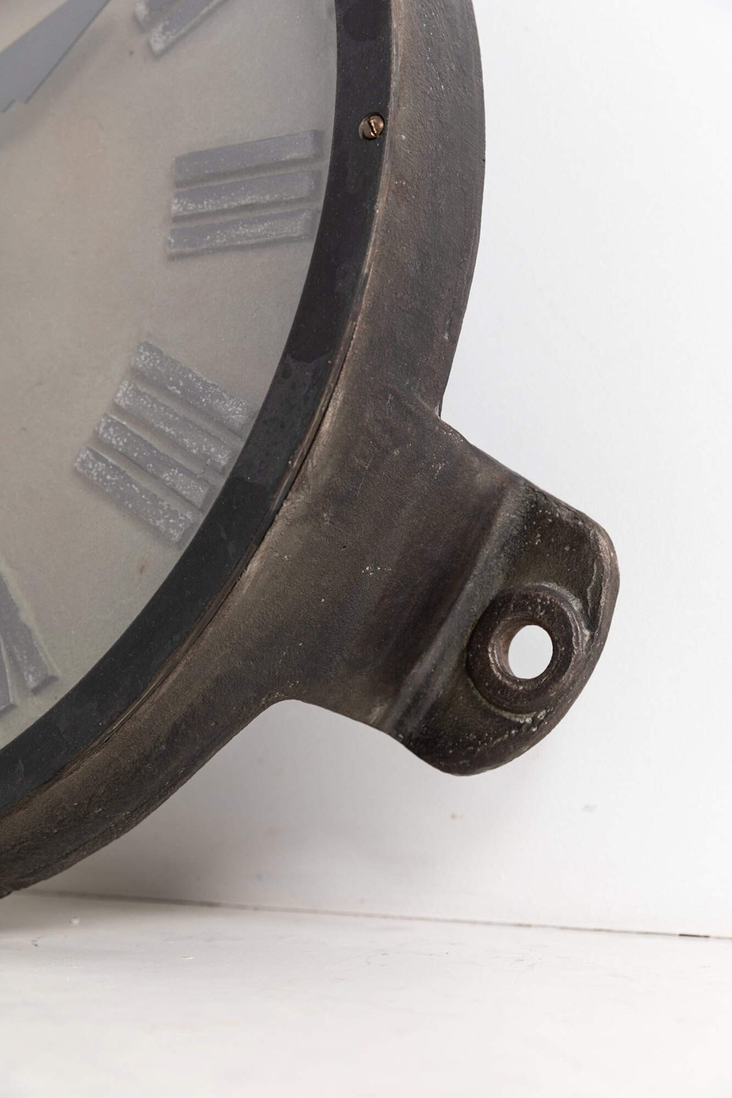 Almost certainly used in an industrial setting, this clock is in wonderful time-worn condition - an imposing single piece cast iron clock with raised numerals. The arrowed hands running on a high torque Quartz movement for modern convenience.