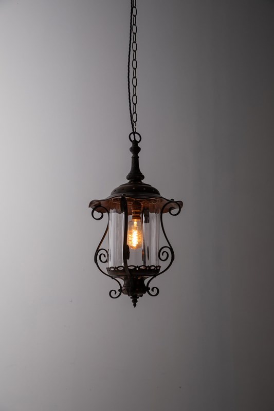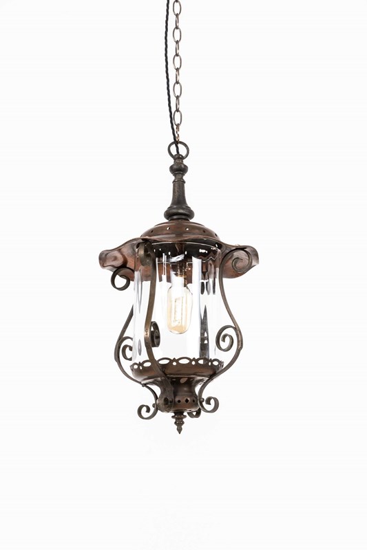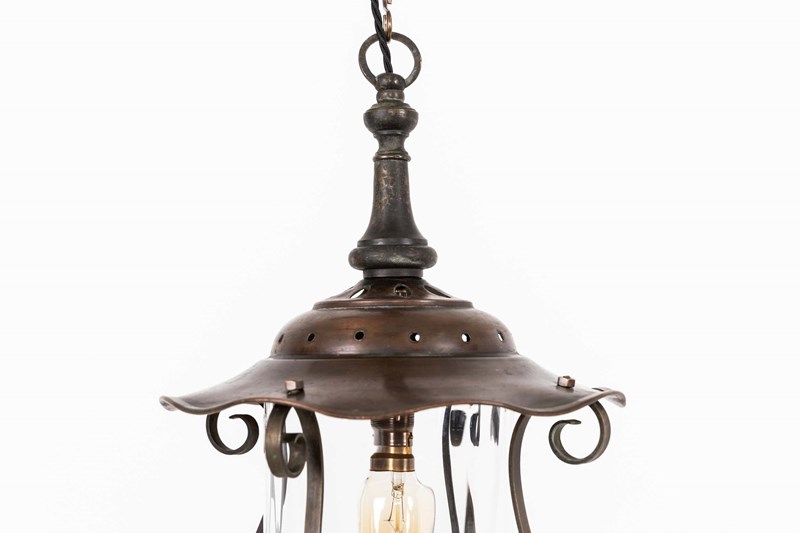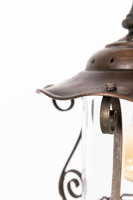 Beautifully formed glazed and copper hall/porch lantern. c.1900