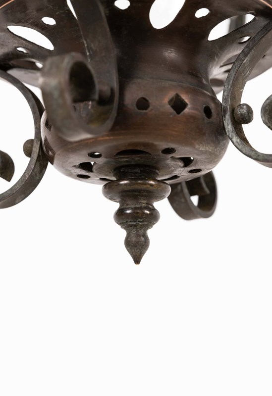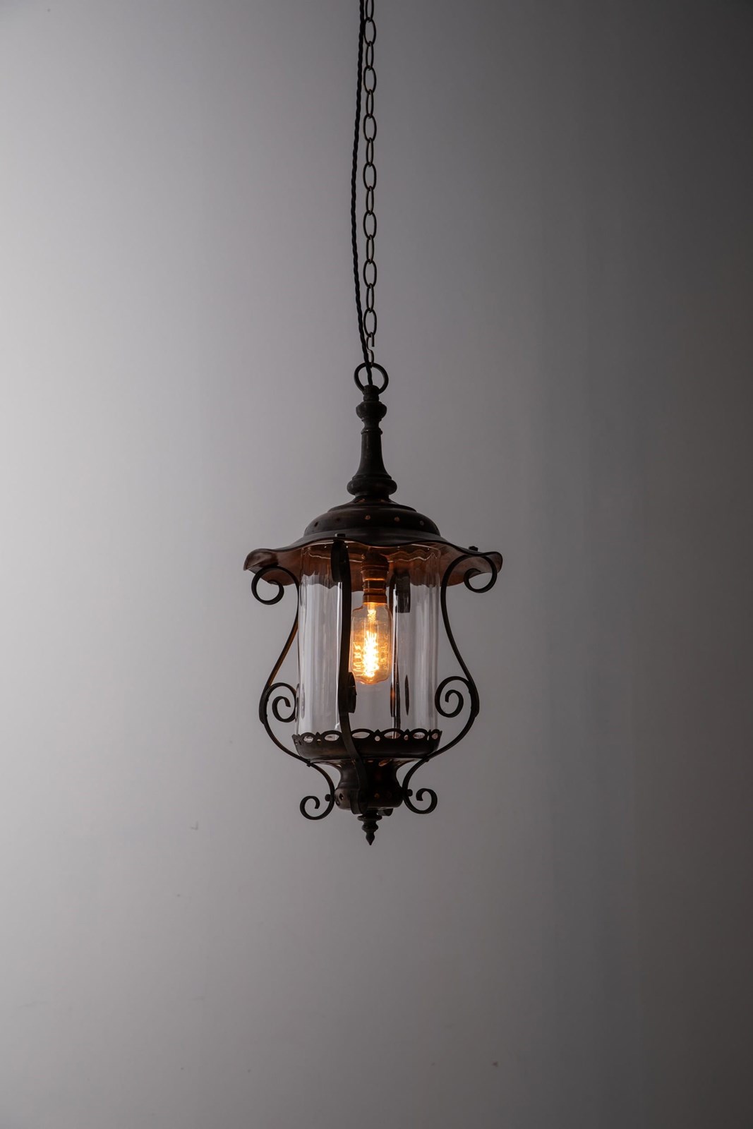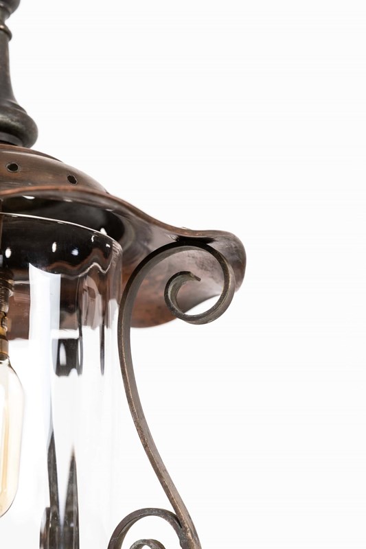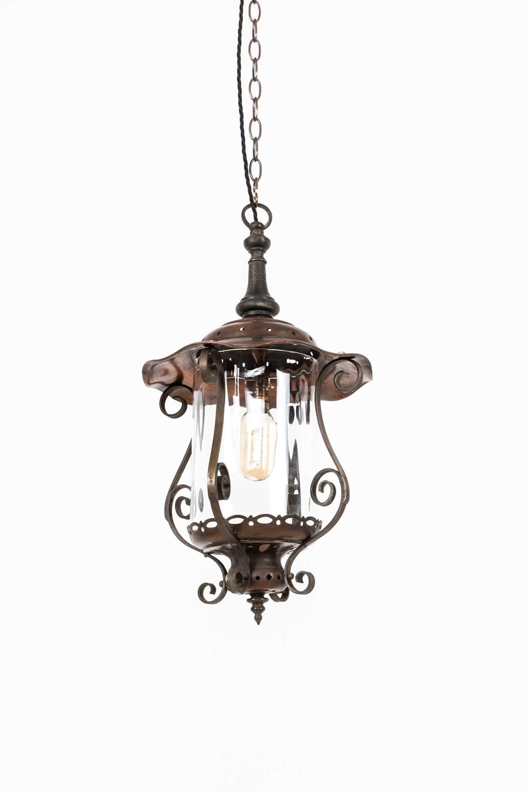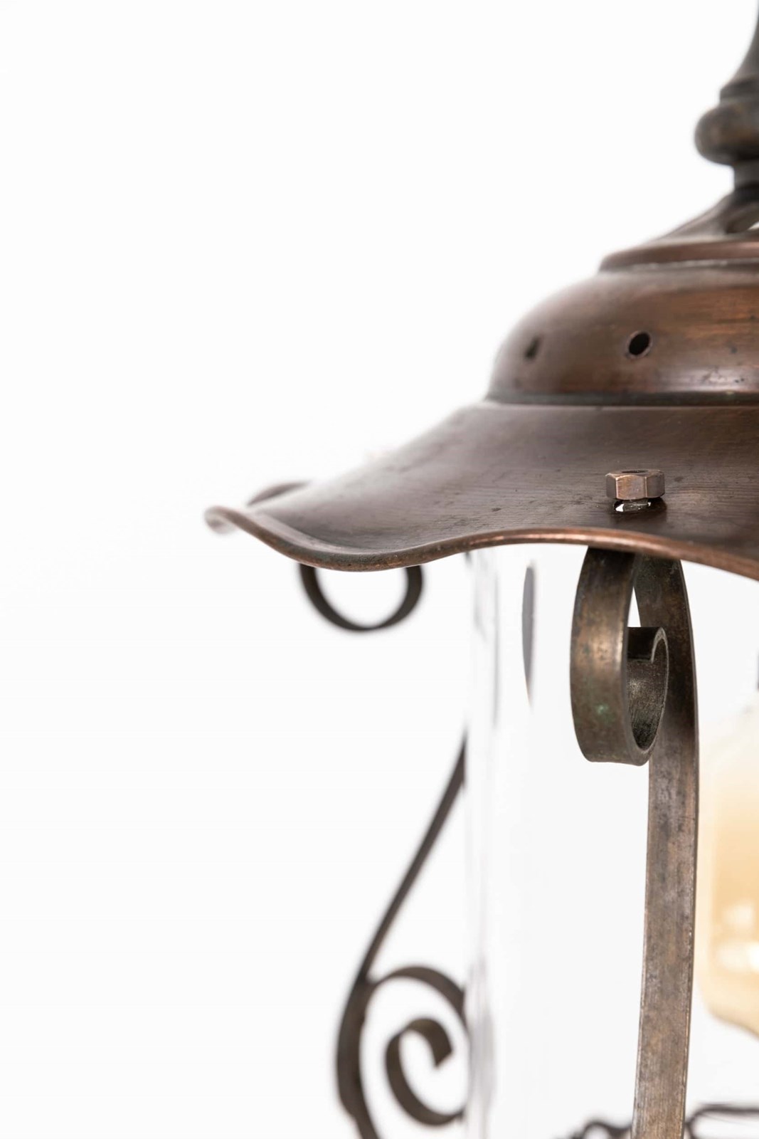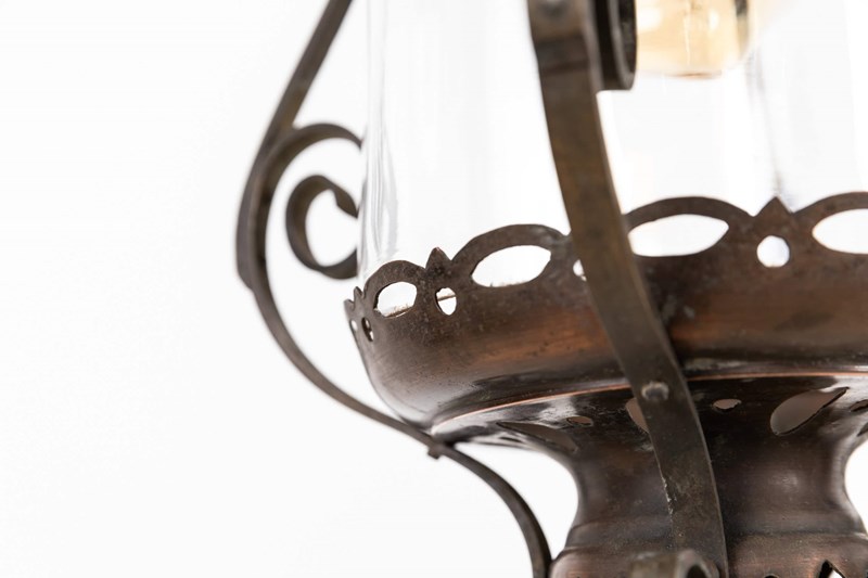 Antique Arts & Crafts Glazed Copper Hall Lantern