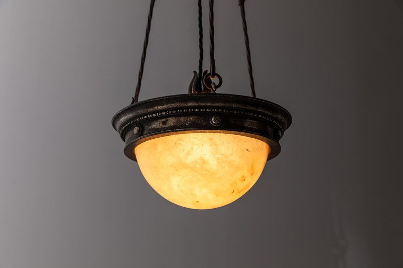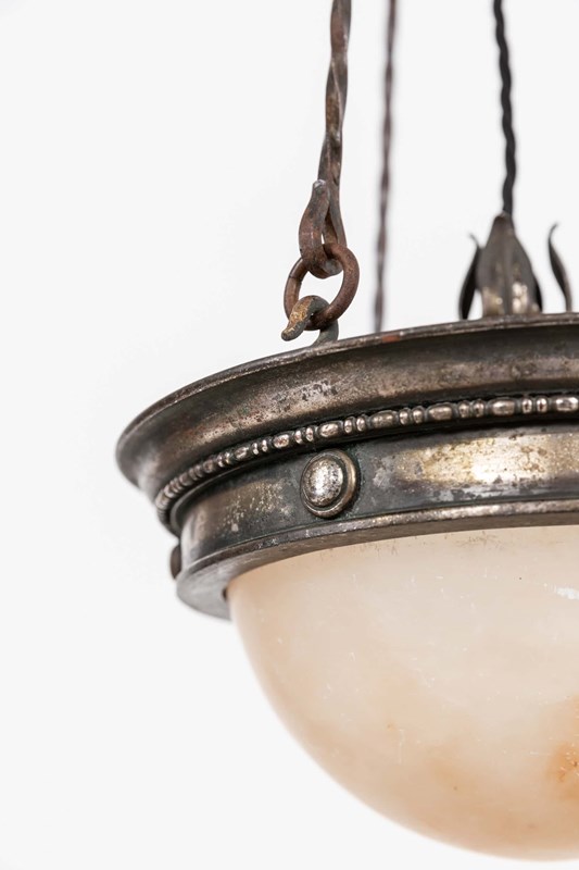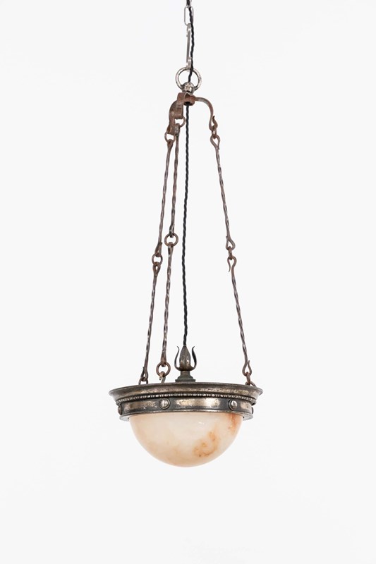 An early 20th century diminutive alabaster plafonnier pendant light. c.1910