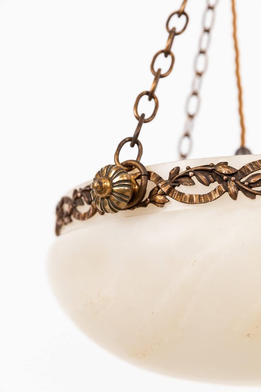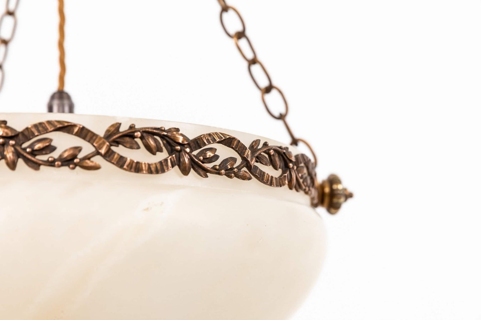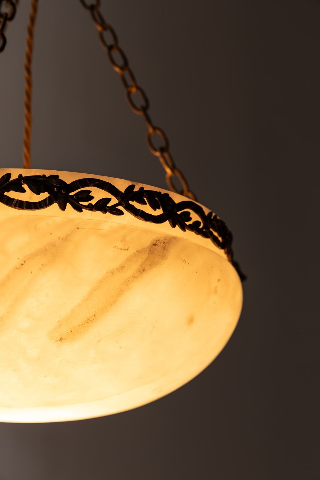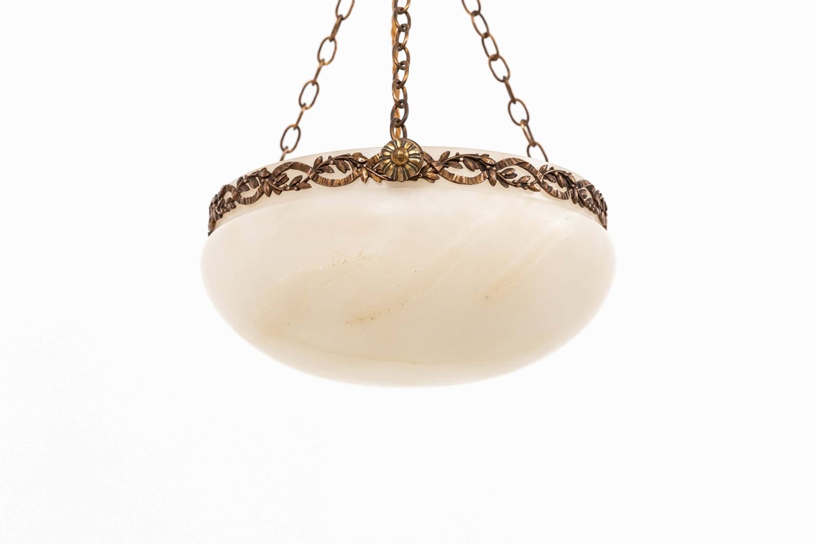 A neatly proportioned French alabaster plafonnier pendant light, c.1920.